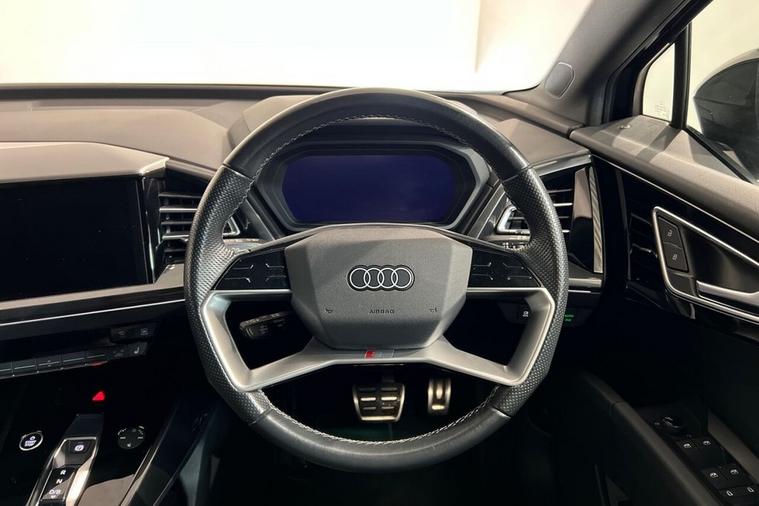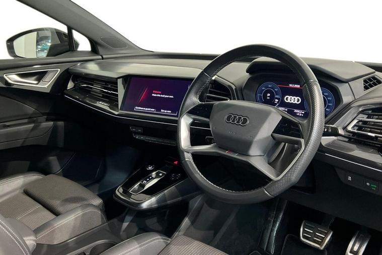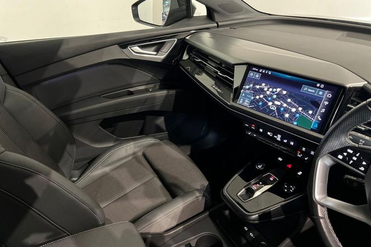 This 2022 Audi Q4 e-tron S line boasts exceptionally low mileage for its age, having covered just 16, 776 miles, and has been owned by only one careful owner. As an electric vehicle, it offers a compelling blend of style and sustainability, with a 55 kWh battery providing a maximum range of 211 miles when new. Charging is convenient, taking approximately 7 hours and 30 minutes at home using a 7kW charger, while rapid public charging can replenish the battery from empty to 80% in as little as 32 minutes, supported by its 110kW DC charging capability. This S line model also features a 7.2 kW onboard charger, heated front seats for comfort, and three zone electronic climate control to ensure everyone enjoys the perfect temperature. For added convenience, rear parking sensors are included. The vehicles MOT is valid until December 2026, and its history check is clear, providing peace of mind. The generous boot space in this Audi Q4 e-tron is a standout feature, offering ample room for shopping, luggage, or sports equipment, making it a practical choice for families and active individuals. The combination of its advanced electric powertrain, the desirable S line trim, and the comprehensive suite of comfort and convenience features, such as the heated seats and climate control, clearly sets this vehicle apart from others. Its low mileage and single owner provenance further enhance its appeal, indicating a well maintained and cherished example of Audis innovative electric SUV.