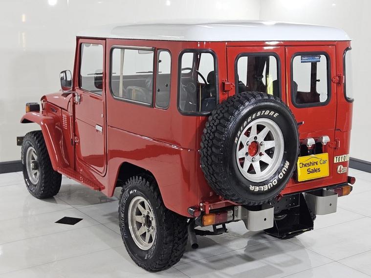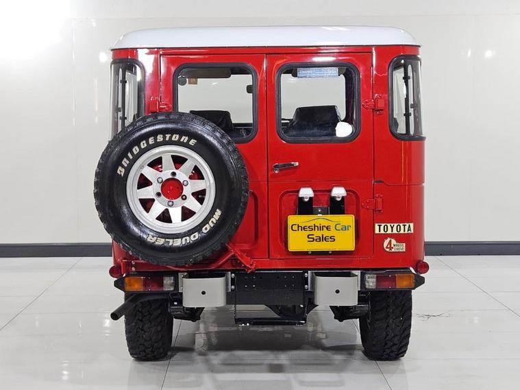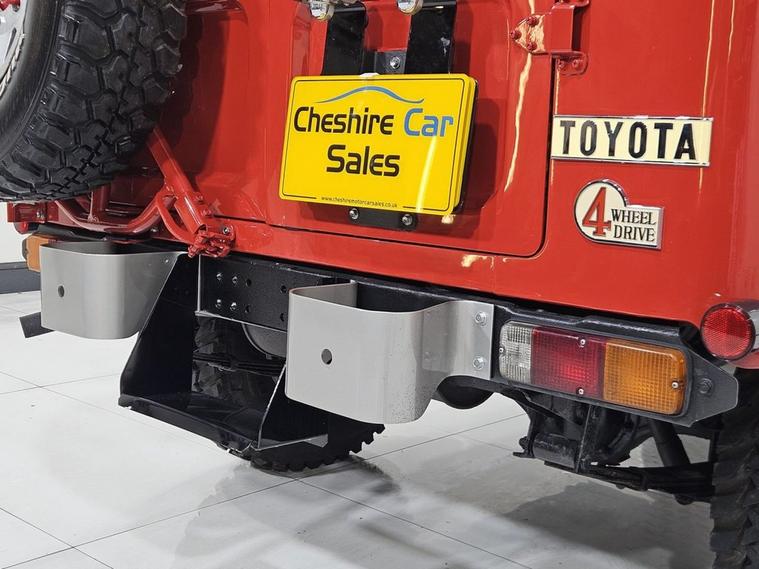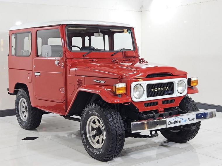 OVER 100 PICTURES ON OUR WEBSITE !!!! FRESH IMPORT, TAX EXEMPT, UK REGISTERED 26/03/2025, WE HANDPICKED THIS IMMACULATE LOOKING LAND CRUISER BJ41 DIRECT FROM JAPAN, FULL BODY OFF RESTO UNDERGONE IN JAPAN, ANY PART WHICH COULD BE PURCHASED BRAND NEW WAS BOUGHT, NO MONEY SPARED, GLASS OUT RESPRAY IN BRILLANT TOYOTA RED, BRAND NEW BRIDGESTONE DUELER TYRES FITTED ALL ROUND INCLUDING SPARE, NEW CHROME WHEEL NUTS, BRAND NEW TOYOTA BADGES ALL ROUND, NEW WINDOW RUBBER SEALS AND DOOR RUBBERS, SUSPENSION BLASTED AND POWDER COATED, POWDER COATED REAR STEP, BRAND NEW TOYOTA SIDE LIGHTS, NUMBER PLATE LIGHTS, AND MAIN BEAMS, NEW LIGHT BULBS, NEW CHROME FRONT BUMPER, NEW UK PLATES, SUSPENSION RUBBERS RENEWED, NEW FUEL FILLER CAP + FILLER NECK, NEW FUEL LINES AND BRAKE LINES, BRAND NEW ELEPHANT DOOR MIRRORS, NEW WIPERS, NEW INTERIOR SEAT COVERS FRONT AND REAR, NEW TOYOTA MATS, NEW REAR CABIN LOAD MAT, NEW STEERING WHEEL + GEAR KNOB, AIR CON, 4 SPEED BOX, H2 + L4 GEAR STICK, VERY SMOOTH CHANGE NO WHINING OR CRUNCH NOISES, CENTER CONSOLE, NEW FOOT PEDAL RUBBERS, NEW ANTENNA AERIAL, NEW DOOR HANDLES, ALL NEW CHROME, NICKEL NUTS + BOLTS + SCREWS USED, NEW FRONT CALIPERS AND HOSES, FULL ENGINE REBUILD WITH BRAND NEW PISTONS + RINGS, NEW SMALL AND MAIN BEARINGS, ALL NEW GASKETS, NEW WATER PUMP AND THERMOSTAT, OIL FILTER, 15W-40 OIL, GEARBOX REFURB, WITH GEAR OIL, NEW DIFF OIL, NEW BRAKE + CLUTCH FLUID, NEW FAN BELT, TWO NEW BATTERIES, REFURB DIESEL PUMP WITH NEW GASKETS, LIST GOES ON, THE LAND CRUISER IS ROT FREE FRESHLY IMPORTED STARTS AND DRIVES LIKE A DREAM, ENGINE IS STILL IN THE PROCESS OF BEDDING IN, WE HAVE PICTURES OFF THE ENGINE REBUILD FOR ALL INTERESTED PARTIES, WE WILL CONSIDER OTHER CLASSIC CARS IN AS PX, DELIVERY AVAILABLE, FOR MORE INFO PLEASE CALL 01616232008