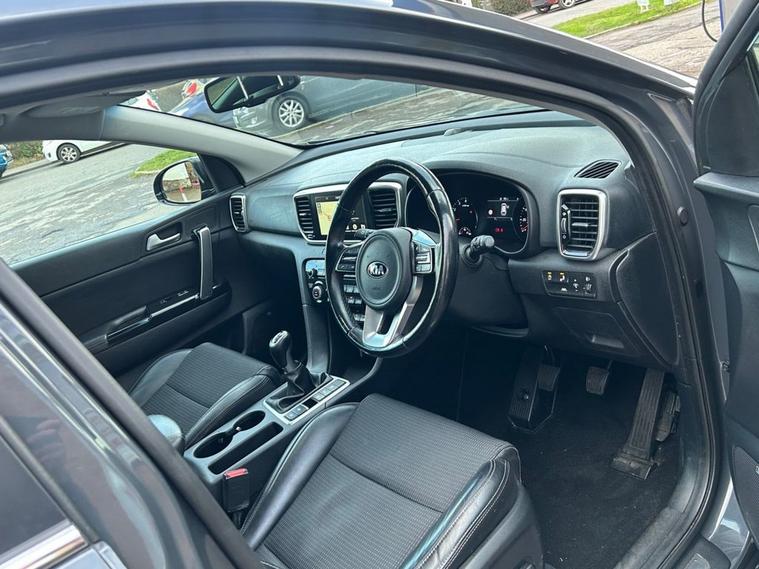 Lovely 2018 68 Kia Sportage 1.6 GDI Edition 5 Door in Dark Penta Metal - Specification includes Half Leather, SAT NAV with DAB Radio, Bluetooth, Apple Car Play and Android Auto, 360 Reverse Camera with Rear Parking Sensors, Electric Folding Door Mirrors, LED Daytime Running Lights, Trip Computer, Cruise Control/Speed Limiter, Electric Windows x 4, Automatic Dual Zone Climate Control with Air Conditioning, Heated Seats and Steering wheel, Electric Seat Adjust, Remote Central Locking with 2 Keys - SERVICE HISTORY - MOT DECEMBER 2026 - Just been serviced -