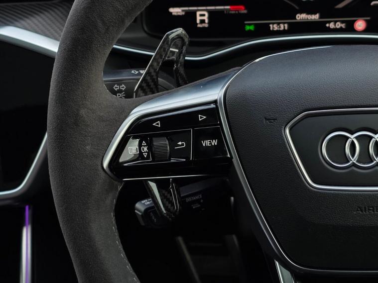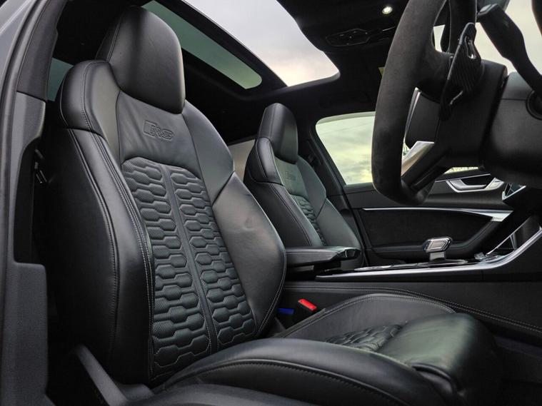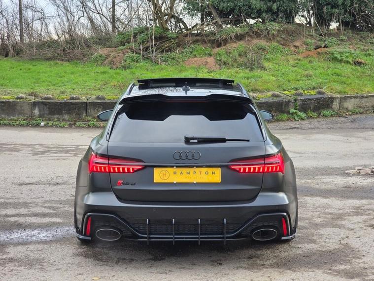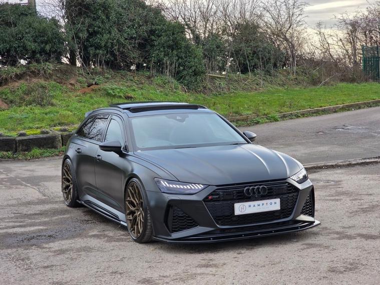 Presented by Hampton Car Sales, a highly rated dealership with over 220 verified five-star Google reviews, this exceptional Audi RS6 Avant 4.0 TFSI V8 Vorsprung is finished in Sebring Black from factory and is currently protected by a ceramic-coated Avery Dennison Satin Black wrap, with pre-wrap condition video available on request. Covering 45, 317 miles, with two previous owners and backed with full Audi service history, this RS6 is a superb example and remains in very clean condition inside and out, enhanced by the desirable factory carbon twill interior. As a Vorsprung trim level, it benefits from Audis highest standard specification, including HD Matrix LED headlights with Audi laser light, panoramic glass sunroof, Bang & Olufsen Advanced 3D sound system, head-up display, 360 cameras, Night Vision Assistant, soft-close doors, four-zone climate control, heated and cooled front seats and heated rear seats, RS Valcona leather sport seating, comfort key, electric tailgate and a host of advanced driver assistance systems, making it both an everyday luxury car and a true performance estate. Over £10, 000 has been investedin tasteful upgrades, including KW adjustable suspension, H&R spacers with extended bolts, a full Maxton Design body kit, 22 hybrid forged Vossen HF-2 wheels with excellent tyres, Eventuri intake and engine cover for enhanced sound and presence, carbon Urus-style paddle shifters, and genuine Audi Alcantara steering wheel and gear knob, items not supplied as standard even on Vorsprung models. For added protection and peace of mind, the front and rear lights have been PPFd and a Ghost immobiliser has been fitted. Finance options are available and part exchange is welcome, making this a rare opportunity to own a meticulously specified and exceptionally well-maintained RS6 Vorsprung.
