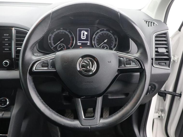 This 2020 Skoda Karoq TSI SE offers exceptional value with its remarkably low mileage of just 36, 000 miles for its age. This Euro 6 compliant, 1.0 litre petrol model comes equipped with desirable features including dual zone climate control for personalised comfort, DAB digital radio and Bluetooth connectivity for seamless entertainment and communication. Youll also appreciate the convenience of automatic headlights, a light and rain sensor, and an auto dimming rear view mirror, all designed to enhance your driving experience. Furthermore, rear parking sensors provide added confidence when manoeuvring. The Skoda Karoq TSI SE stands out with its impressive fuel economy, achieving an excellent 45 miles per gallon, which is better than many similar vehicles. Its low CO2 emissions also contribute to a more environmentally conscious drive. Practicality is a key strength, boasting a large boot space perfect for shopping trips or family holidays. Adding to its appeal, this model falls into a low insurance group, making it an economical choice for many drivers.