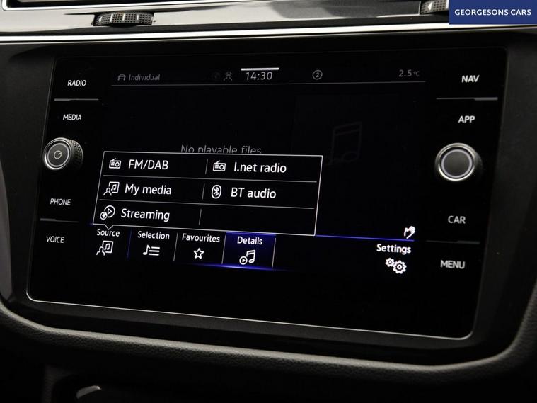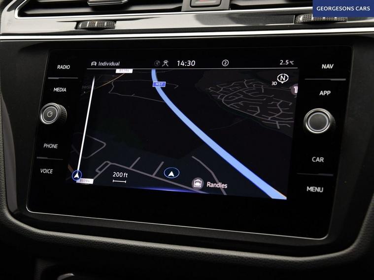 The Volkswagen Tiguan 2.0 TDI R-Line combines a responsive 2.0-litre turbo diesel engine with 150hp, delivering 0-62mph in 9.3 seconds and up to 52.3mpg in this front-wheel-drive setup with a smooth 7-speed DSG automatic transmission. The top-spec R-Line trim enhances the sporty appeal with 19-inch alloy wheels, aggressive styling, and a dynamic chassis for engaging compact SUV performance. With one owner, this Tiguan is in excellent condition. Ambient lighting creates a sophisticated interior atmosphere, while integrated satellite navigation, Apple CarPlay, Bluetooth, and DAB radio ensure seamless connectivity on every journey. Parking is a breeze thanks to parking sensors and park assist, providing comprehensive visibility and confidence in tight spaces. Stay comfortable with dual-zone climate control, heated seats, and heated steering wheel, offering personalised warmth year-round. Adaptive cruise control with speed limiter and lane assist enhance safety and relaxation on highways, while hill assist ensures smooth starts on inclines. Blind spot assist adds extra security. Selectable drive modes provide tailored performance, whether for efficiency or dynamic driving. The spacious five-door SUV design includes a 615-litre boot for practicality.
