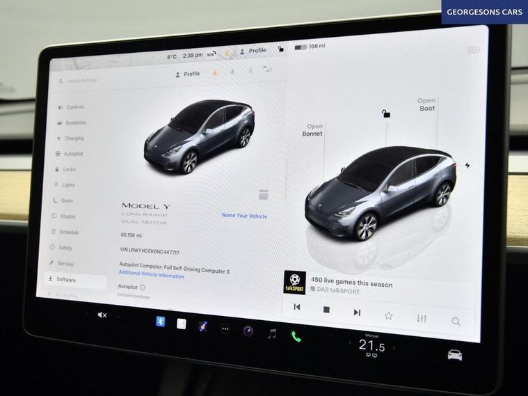 This Tesla Model Y Dual Motor Long Range is an all-electric SUV featuring dual-motor all-wheel drive and automatic transmission, delivering strong performance and long-distance capability of up to approximately 331 miles (WLTP). With one owner from new, it offers a high level of standard technology and everyday practicality in a spacious SUV format. It is equipped with a panoramic glass roof, satellite navigation, Bluetooth and DAB radio. Manoeuvring is supported by a reverse camera, 360 camera system and parking sensors. Comfort features include climate control, electric heated seats and a heated steering wheel. Driver assistance systems include adaptive cruise control, speed limiter, lane assist, blind spot assist and push-button start, making this a well-specified and capable long-range electric SUV.