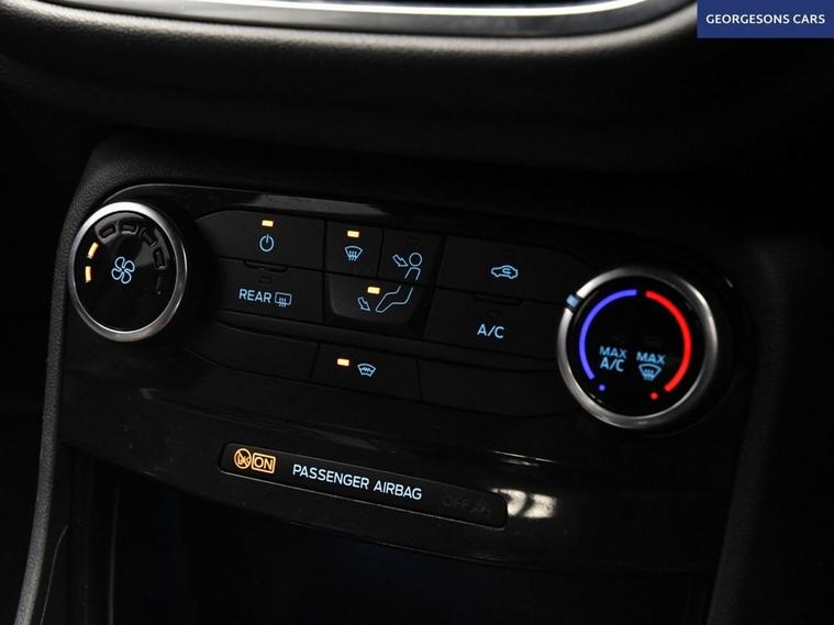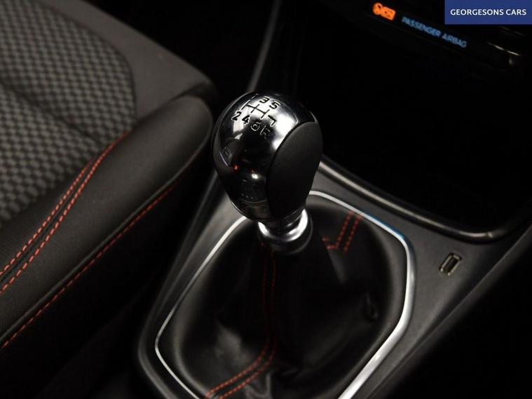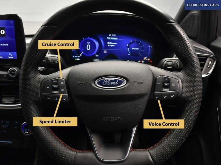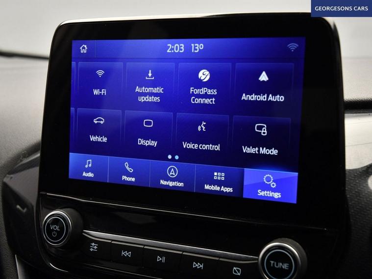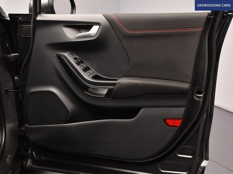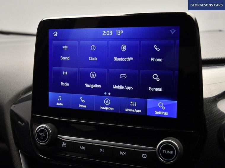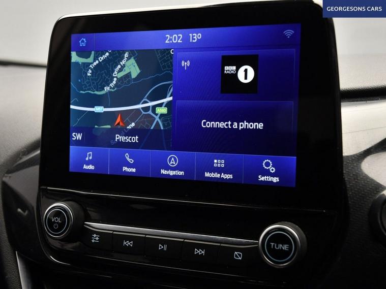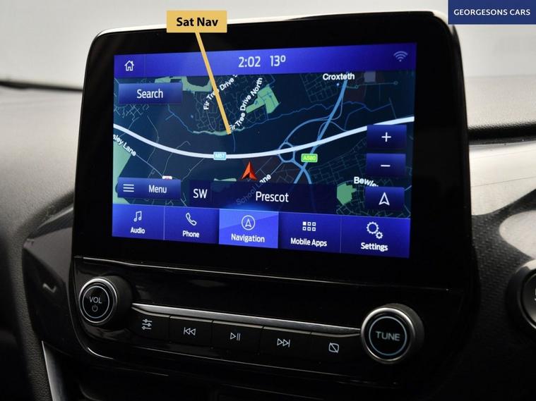 The Ford Puma 1.0T EcoBoost MHEV ST-Line combines a responsive 1.0-litre turbo mild-hybrid petrol engine with 125hp, delivering 0-62mph in 9.8 seconds and up to 52.3mpg in this front-wheel-drive setup with a precise 6-speed manual transmission. The ST-Line trim enhances the sporty appeal with 17-inch alloy wheels, aggressive styling, and a dynamic chassis for engaging compact SUV performance. Navigate effortlessly with integrated satellite navigation, Apple CarPlay, Bluetooth, and DAB radio, ensuring seamless connectivity on every journey. Parking is a breeze thanks to the parking sensors, providing confidence in tight spaces. Stay comfortable with air conditioning, offering personalised cooling year-round, and a heated windscreen for quick defrosting on chilly mornings. Cruise control with speed limiter enhances relaxation on highways, while lane assist boosts safety on varied routes. The spacious five-door SUV design includes a 456-litre boot for practicality. Contact us today to test drive this premium sporty Puma!
