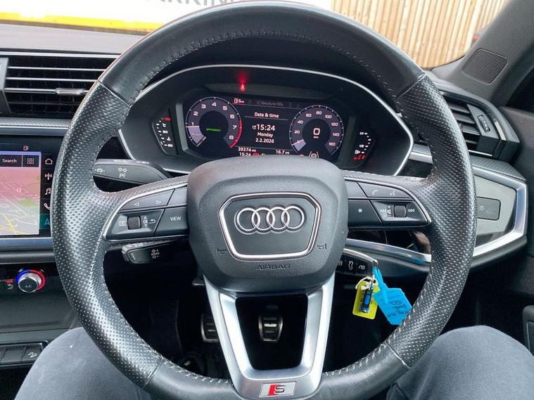 - 3-Spoke Leather Multi-Function Steering Wheel - S Badging and Grips in Perforated Leather with Contrast Stitching