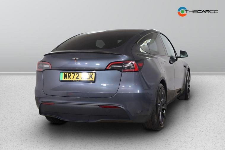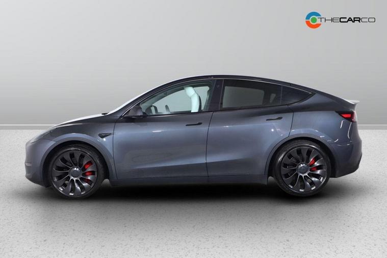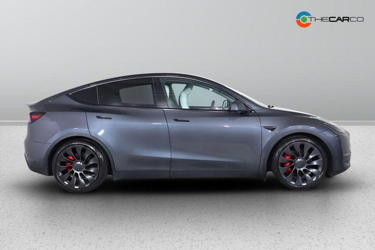 This 2022 Tesla Model Y Performance offers an exhilarating driving experience with its rapid acceleration. As an electric vehicle, it features a Four Wheel Drive drivetrain powered by an 85 kWh battery, providing a maximum range of 319 miles when new. Charging at home using a 7kW charger will take approximately 12 hours for a full charge, while rapid public charging can take you from empty to 80% in just 25 minutes. This Model Y also comes equipped with front and rear parking sensors for easier manoeuvring, Bluetooth connectivity for music and media, and striking LED headlights. Enjoy the open sky through the expansive glass roof, which offers ultraviolet and infrared protection. The Performance variant of the Model Y truly stands out. Its impressive 0-60mph acceleration time of just 3.5 seconds demonstrates its dynamic capabilities, setting it apart from many other vehicles. Furthermore, the generous boot space ensures practicality for all your needs, making this electric SUV a compelling choice for those seeking performance, range, and utility.