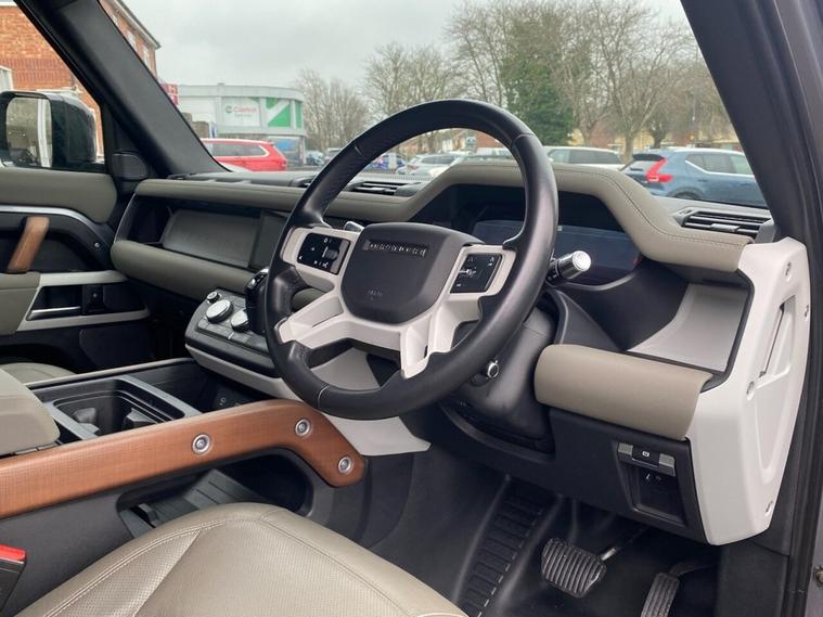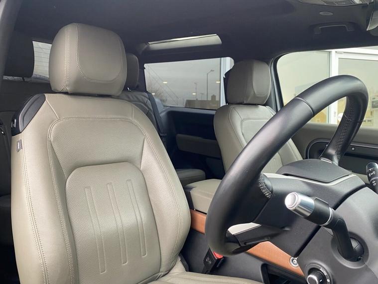 This 2021 Land Rover Defender 90 D250 SE is a superb example, having been owned by just one careful keeper from new and boasting a clear vehicle history check. Under the bonnet, a powerful 3.0 litre diesel engine paired with a Four Wheel Drive system ensures capability in all conditions, meeting Euro 6 emissions standards. This SE trim level comes equipped with a striking Black Contrast Roof and luxurious Windsor Leather seats in Khaki and Ebony, offering both style and comfort. The Defender 90 D250 SE excels with its impressive performance, accelerating from 0 to 60mph in a swift 7.6 seconds, a highlight that sets it apart from many similar vehicles. Further enhancing its appeal are features such as Android Auto for seamless smartphone integration, a premium Meridian Sound System for an immersive audio experience, and a 360 Degree Parking Aid to make manoeuvring effortless. With a substantial towing weight of 3500 kg and falling into a low insurance group, this Defender 90 represents a practical and desirable choice.