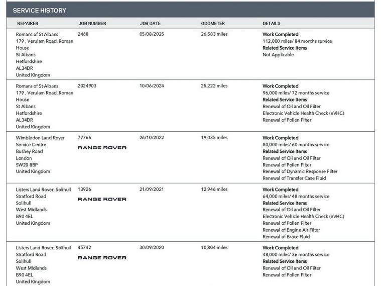 Romans of St Albans are delighted to present to this Luxurious Range Rover SV in factory finish SVO Premium Palette Grey (Matte Finish). Full service history, and a massive spec to include: Satin Matte Finish Paint, 22in Alloy Wheels - 5 Split Spoke Gloss Black, Privacy Glass, Meridian Sound System, 360 Degree Cameras, Front Massage Seats, Heated and Ventilated Seats, Rear Heated Seats, Fridge Compartment, Apple Car Play, Android Auto, and much more! FINANCE AVAILABLE. A £299 admin fee applies to third party finance companies being used. ULEZ COMPLIANT. FREE ON-SITE PARKING (ASK FOR DETAILS.) Romans after care package includes: Romans warranty for 6 months (12, 24 & 36 months are available), Main dealer cover available, Free breakdown cover for warranty duration, Full Romans service prior to delivery, 84 point vehicle inspection, 12 months MOT, Free Lifetime MOT when servicing with us (ask for details), Total value of package: £2000 - ALL INCLUSIVE IN THE PRICE. All of our clients have the added peace of mind that we have our own workshop facilities with free courtesy cars. Part Exchange very welcome, nationwide delivery also available. To avoid a wasted journey we highly recommend making an appointment, so call us now to get yours booked! Romans provide the highest of quality vehicles, and have at least 80 cars in stock at any one time. This means not all cars can be kept on site. This will also allow us to give you our fully undivided attention when viewing the vehicle you are interested in, WE ARE LOOKING TO BUY YOUR TOP SPEC, LOW MILEAGE, FULL SERVICE HISTORY PRESTIGE, SPORTS, AND 4X4 VEHICLES. GET MORE FOR YOUR VEHICLE BY EITHER SELLING TO US, OR ASKING US TO SELL YOUR VEHICLE FOR YOU. PRIVATE BUYERS WANT WARRANTIES, THEY WANT TO PART EXCHANGE, THEY WANT FINANCE - TAKE ADVANTAGE OF ALL OUR FACILITIES. CALL US NOW TO DISCUSS GETTING RID OF YOUR VEHICLE QUICKLY.