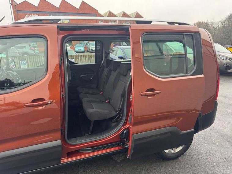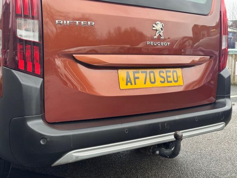 RARE 7 SEATER EXAMPLE Peugeot Rifter 1.5 BlueHDi Allure in Sunset Copper paintwork with 16inch silver alloys. Only 1 OWNER FROM NEW with FULL SERVICE HISTORY - 4 service stamps to 40, 000 miles. This highly versatile vehicle is designed with flip-down rear seats, allowing for an expanded loading area. It meets both CAZ and ULEZ standards, making it perfect for use as both a van and an MPV. With the seats up, it offers 330 litres of boot space, and with the seats down, it provides an impressive 3, 000 litres. As its not classified as a commercial vehicle, the annual tax is just £195. It boasts an excellent specification, including Apple CarPlay, Android Auto, Navigation, Bluetooth connectivity, USB & AUX input, DAB digital radio, front + rear parking sensors, cruise control, a speed limiter, automatic headlights, rain-sensing wipers and much much more. Viewing welcome please call 01138032273 or visit dealer's website