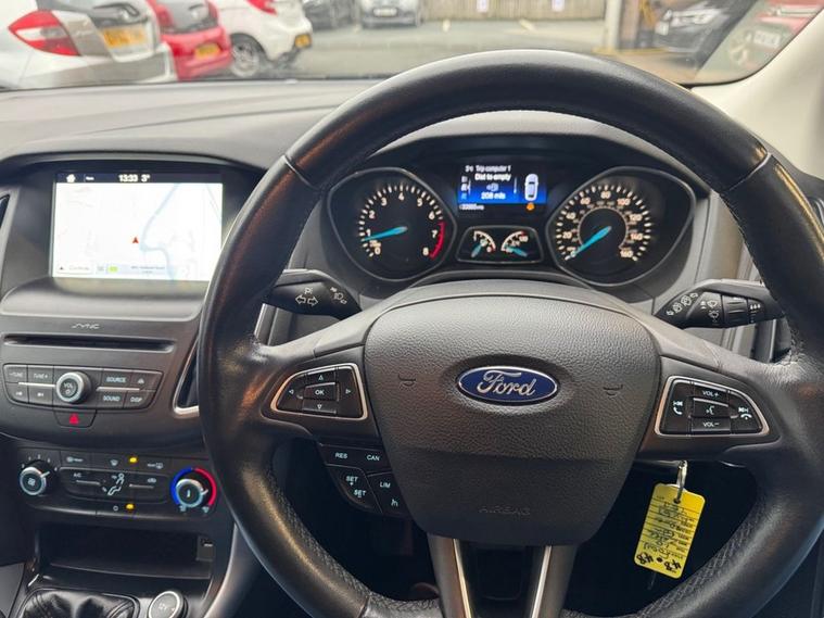 Ford Focus 1.0 Petrol Titanium in Deep impact Blue paintwork with 16 inch alloys. Only 1 owner from new with comprehensive service history - recently serviced at 32, 000 miles. Inside, youll find manual air conditioning for comfort and the Ford SYNC3 DAB Navigation System, which seamlessly integrates with Android Auto and Apple CarPlay, plus Bluetooth connectivity. Rear parking sensors, Sat nav, and air con are other highlights. The Focus is powered by an efficient 1.0L petrol engine, boasting over 60 miles per gallon and 125BHP. Its compliant with Euro 6 emissions standards so ULEZ and CAZ compliant. WE HAVE 12 FORD FOCUS AVAILABLE, PLEASE Call 01138032273 or visit dealer's website