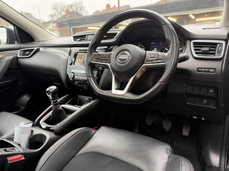 Scotts of Leeds used Car Sales are pleased to offer this NISSAN QASHQAI 1.5 dCi Tekna SUV 5 Door Diesel Manual in Black. The car is in good condition throughout, in the best colour combination and a great specification including Satellite navigation, Apple car play, Android Auto, Panoramic roof, Heated part leather seats, Bluetooth, DAB digital radio, Front & rear parking sensors, 360 Reverse camera, Automatic lights & wipers, USB point, Aux point, Park assist, Blind spot detection, Bose Sound, Lane departure warning, Voice command, Electric folding mirrors, Electric windows, CD player, Privacy glass, 6 speed gearbox, Drivers armrest, Isofix, Alloy wheels and much much more. 1 Former Keeper supplied with an up to date service record including 5 services, an MOT until December 2026 and 2 Keys ready to drive away. 3 MONTH NATIONWIDE WARRANTY provided with all vehicles. NATIONWIDE DELIVERY also available. A guaranteed 12 Months MOT can be added for an extra £100. DISCLAIMER: The above specification is true and correct. Any other specification listed elsewhere can sometimes be incorrect. Please check with Sales Executive to clarify this if needed prior to purchase.