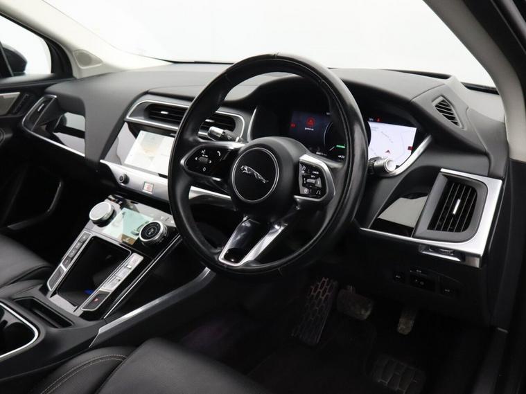 This 2020 Jaguar I PACE 400 HSE offers a compelling blend of performance and luxury, boasting service history for added peace of mind. As an electric vehicle, it delivers a smooth and quiet driving experience, complemented by its Four Wheel Drive system for confident handling in various conditions. The substantial 90 kWh battery provides a maximum range of 284 miles from new, ensuring you can travel further on a single charge. Charging is convenient, with a full charge at home taking approximately 12 hours and 36 minutes using a 7kW charger, while rapid public charging can replenish the battery from empty to 80% in just 50 minutes. Experience the thrill of instant acceleration with the I PACE capable of reaching 0 to 60mph in a remarkable 4.5 seconds, a testament to its electric power. This HSE trim level comes equipped with a host of desirable features, including a Head Up Display to keep your eyes on the road, a Black Exterior Pack for a striking visual presence, and a Heated Steering Wheel for comfort during colder journeys. Enjoy seamless smartphone integration with Apple CarPlay and immerse yourself in superior audio quality thanks to the Meridian 3D Surround Sound System. Furthermore, the I PACE offers generous boot space, making it a practical choice for everyday life and longer trips.