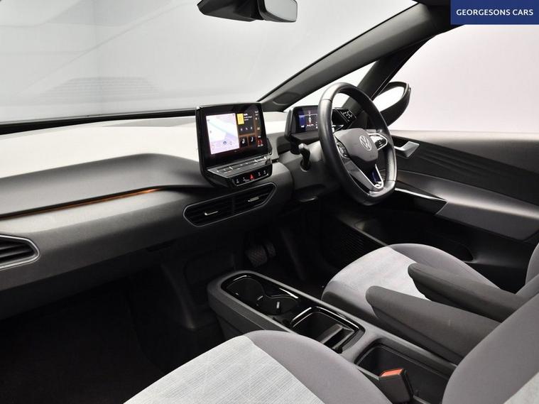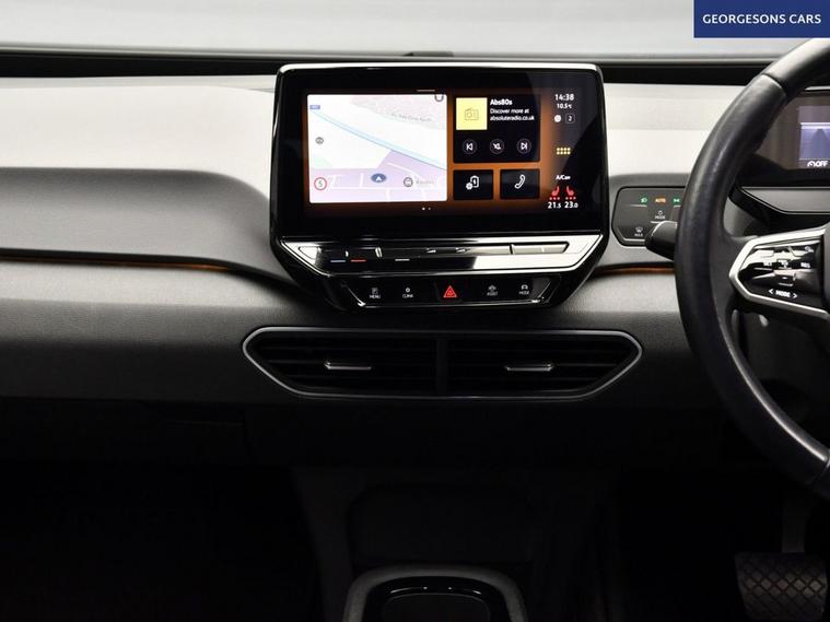 This Volkswagen ID.3 Pro 58kWh Life is a rear-wheel-drive all-electric hatchback powered by a 58kWh battery and automatic transmission, offering smooth performance and excellent efficiency for everyday driving. With one owner from new, this ID.3 is presented in excellent condition and benefits from the well-equipped Life specification, focused on comfort and technology. It is equipped with satellite navigation, Apple CarPlay, Bluetooth and DAB radio for seamless connectivity. Manoeuvring is assisted by parking sensors, while dual-zone climate control, heated seats and a heated steering wheel ensure comfort in all conditions. Additional features include lane assist, selectable drive modes and push-button start, making this ID.3 a practical, modern and well-specified electric hatchback.