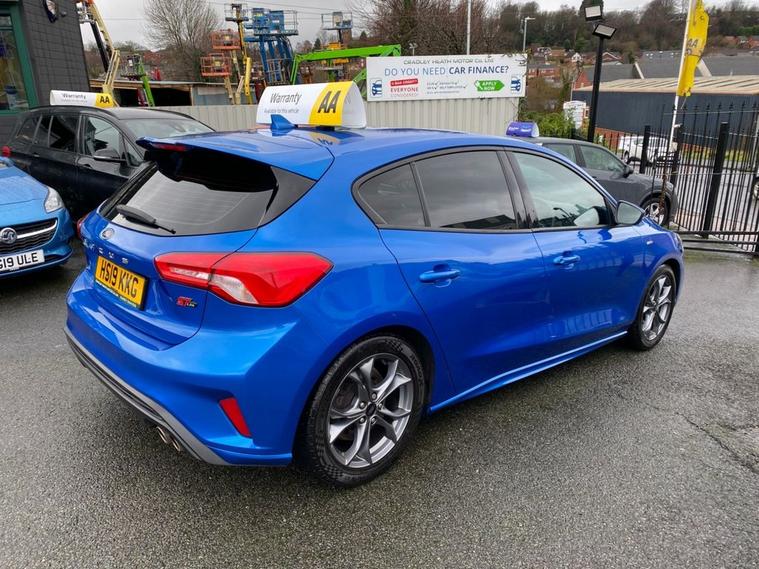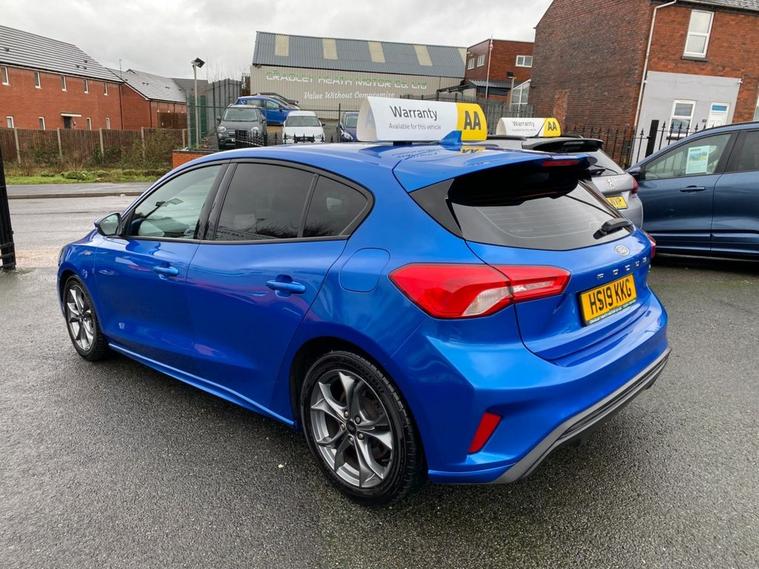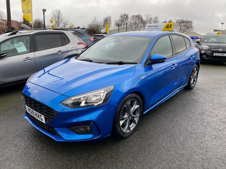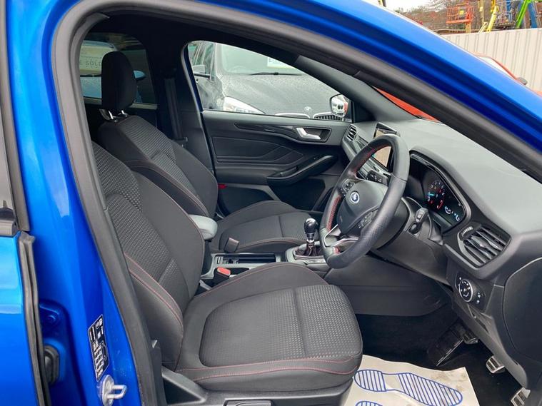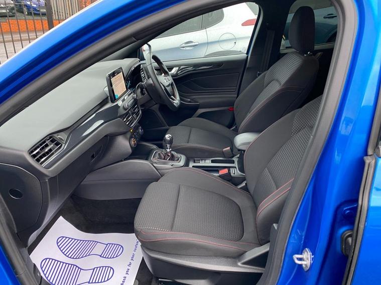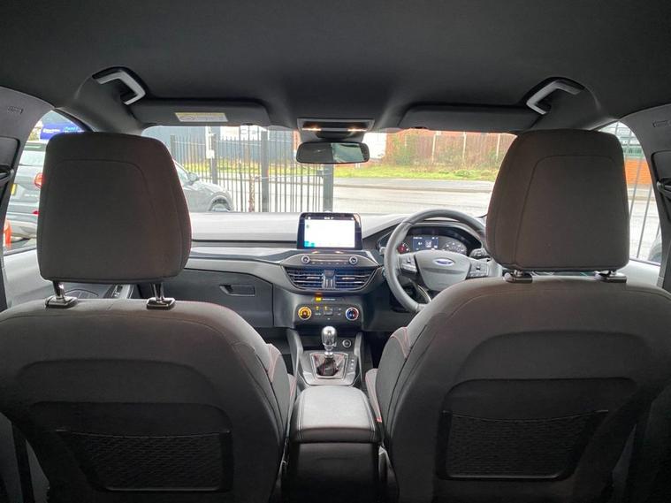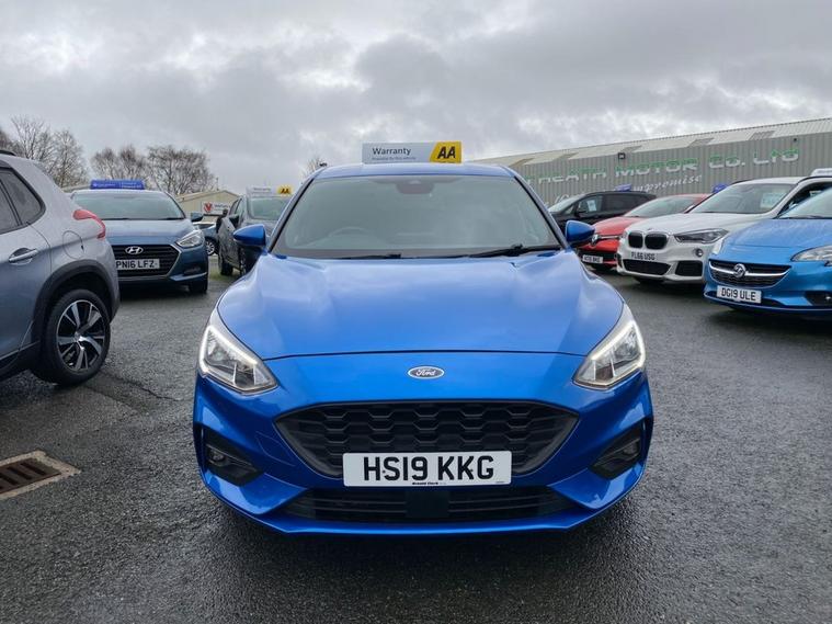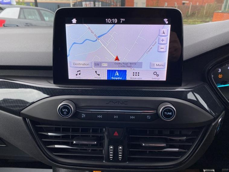 This 2019 Ford Focus ST-Line T offers a compelling blend of sporty design and modern technology. Powered by a 1.5 litre petrol engine, this Euro 6 compliant vehicle delivers an engaging driving experience with a 0-60mph time of just 8.8 seconds. Inside, youll find a premium centre console featuring a sliding armrest and a cupholder with a sliding cover, alongside an ST-Line aluminium gearshift knob. Stay connected and entertained with Ford SYNC, which includes an 8 inch TFT touchscreen compatible with Android Auto and Apple CarPlay. Manual air conditioning ensures a comfortable cabin environment, while automatic headlights provide convenience and enhanced visibility. The ST-Line trim level signifies a sportier aesthetic and enhanced driving dynamics, setting this Focus apart from standard models. The inclusion of features like the premium centre console and the advanced Ford SYNC system with smartphone integration highlights its superior comfort and connectivity. These elements combine to offer a refined and enjoyable driving experience, demonstrating the thoughtful design and advanced features present in this 2019 Ford Focus ST-Line T.