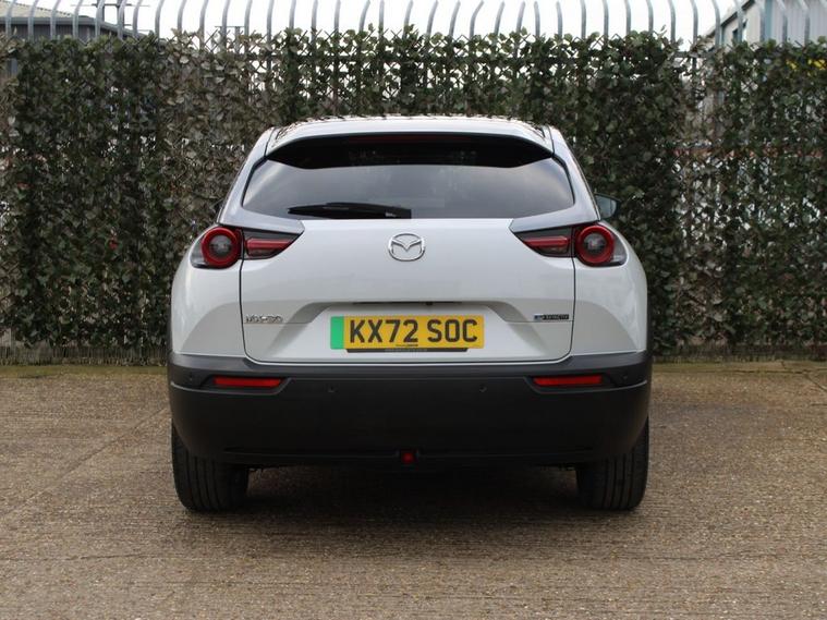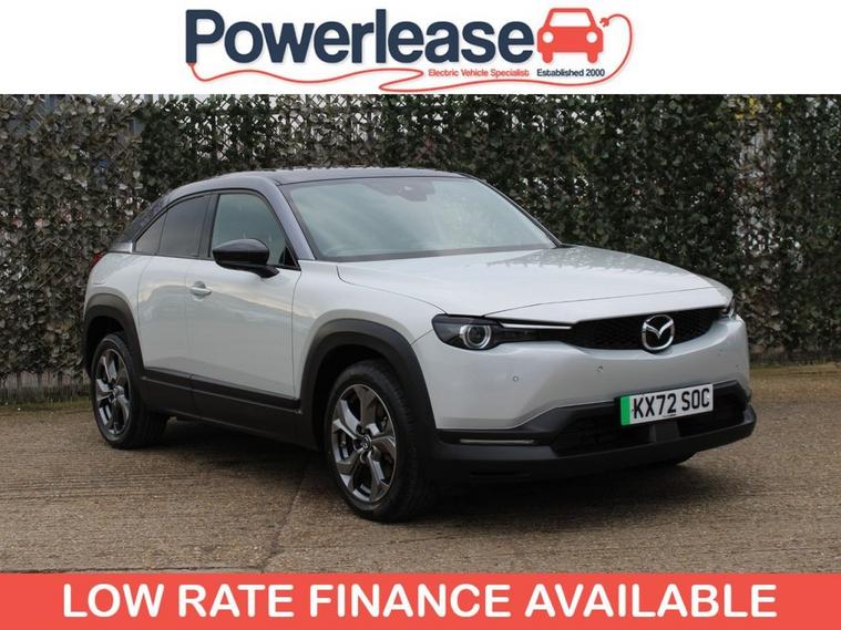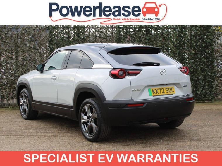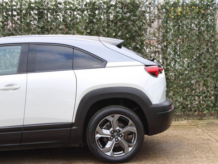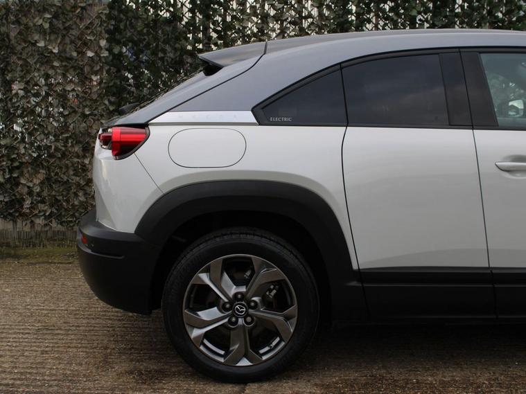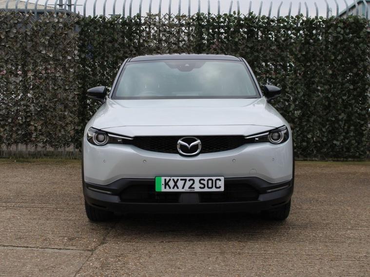 This 2022 Mazda MX-30 GT Sport Tech is an electric vehicle offering a stylish and modern driving experience. With a 36 kWh battery, it provides a maximum range of 124 miles when new, making it suitable for daily commutes and shorter journeys. Charging is convenient, with a full charge at home using a 7kW charger taking approximately 5 hours. For faster top ups, public charging can take the battery from empty to 80% in as little as 48 minutes. The GT Sport Tech trim level comes equipped with a range of advanced features designed to enhance comfort and safety. These include Mazda Radar Cruise Control with Intelligent Speed Assist for effortless highway driving, and Adaptive Signature LED Headlights that adjust to your surroundings. Inside, youll find the comfort of heated front seats and a heated steering wheel, perfect for colder weather. The Emergency Lane Keeping system, incorporating Blind Spot Assist, further adds to the vehicles comprehensive safety suite, demonstrating its advanced technology compared to other vehicles in its class.