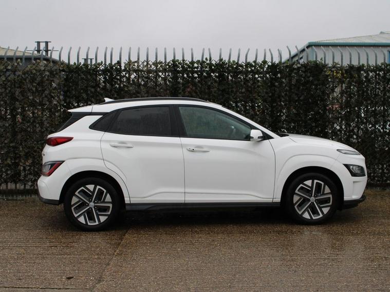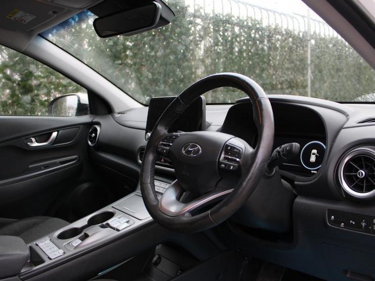 This 2021 Hyundai KONA Premium Electric boasts a single owner from new, offering a pristine example of this popular model. With its impressive 68 kWh battery, this KONA provides a substantial maximum range of 300 miles when new, making it ideal for both daily commutes and longer journeys. Inside, youll find a host of convenient features designed for comfort and ease of use, including climate control with an automatic de fog system for the front windscreen, full LED headlights for enhanced visibility, and Bluetooth connectivity with voice recognition. Practicality is further enhanced by a wireless phone charging pad and a rear parking camera with guidance system, ensuring stress free manoeuvring. The electric powertrain of this KONA Premium offers significant advantages. A full charge at home using a 7kW charger takes approximately 10 hours and 16 minutes, providing a convenient overnight top up. For faster charging on the go, an empty to 80% charge can be achieved in as little as 53 minutes at a public charging station. These charging times, combined with the 300 mile maximum range, demonstrate how this Hyundai KONA Electric offers a compelling and efficient driving experience compared to other vehicles in its class.