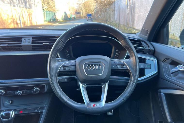 - 3-Spoke Leather Multi-Function Steering Wheel - S Badging and Grips in Perforated Leather with Contrast Stitching