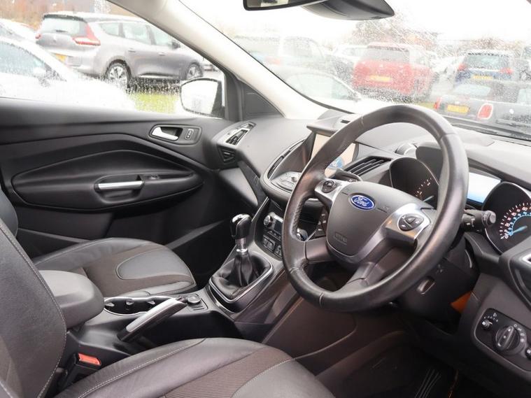 This 2016 Ford Kuga TDCi Titanium Sport boasts a clear vehicle history and has had only one former keeper and a good service history, offering peace of mind. This Four Wheel Drive model is powered by an efficient 2.0L Diesel engine and meets Euro 6 emission standards. It comes equipped with convenient features such as front and rear parking sensors with parking assistance, automatic headlights, and dual zone electronic automatic air conditioning. Enjoy seamless connectivity with Bluetooth hands free phone functionality. With an impressive fuel economy of 54 miles per gallon, this Kuga TDCi Titanium Sport is designed to be economical for your journeys. Its low CO2 emissions also highlight its efficiency compared to similar vehicles. This well maintained Ford Kuga offers a blend of practicality, comfort, and cost effective driving.