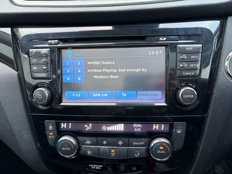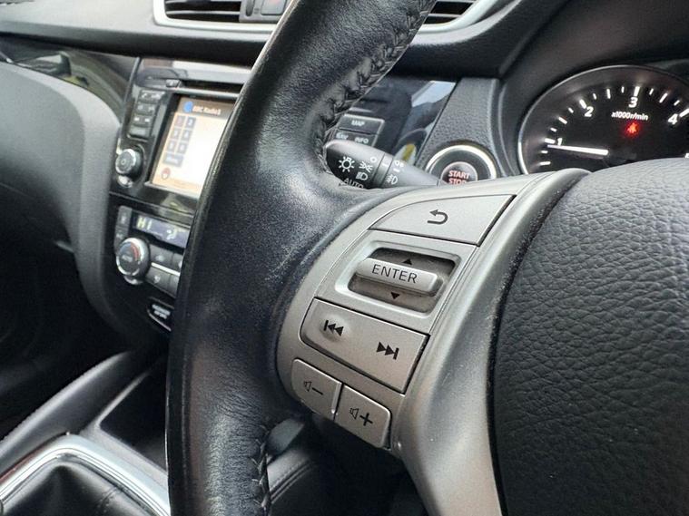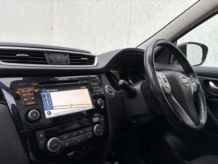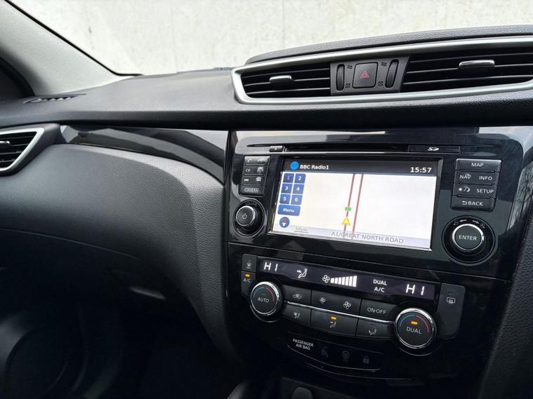 THIS WELL PRESENTED NISSAN QASHQAI FINISHED IN METALLIC BLACK WITH 2 PREVIOUS OWNERS COMES WITH FULL SERVICE HISTORY, 2 KEYS AND COSTS ONLY £20 A YEAR FOR ROAD TAX. FEATURES INCLUDE TOUCHSCREEN SATELLITE NAVIGATION, BLUETOOTH HANDS-FREE, DUAL CLIMATE CONTROL WITH AIR CONDITIONING, FULL PANORAMIC GLASS ROOF, DAB DIGITAL RADIO/CD PLAYER WITH AUX AND USB POINT, BLUETOOTH MEDIA CONNECTIVITY, FRONT AND REAR PARKING SENSOR WITH 360 DEGREE REVERSING CAMERA, MULTI FUNCTION LEATHER STEERING WHEEL, CRUISE CONTROL, KEYLESS START/STOP, AUTO LIGHTS, AUTO WIPERS, KEYLESS START/STOP, 4 X ELECTRIC WINDOWS, ELECTRIC POWER FOLDING MIRRORS, DRIVERS HEIGHT ADJUSTER, REMOTE CENTRAL LOCKING, 6 SPEED MANUAL GEARBOX AND 18 ALLOY WHEELS.