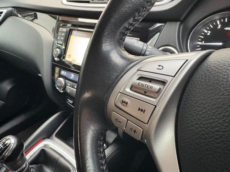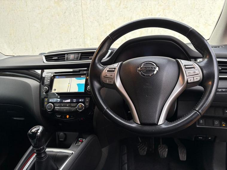 ONLY 2 OWNERS WITH FULL NISSAN SERVICE HISTORY. THIS HIGH SPECD AND WELL PRESENTED NISSAN QASHQAI FINISHED IN BLACK METALLIC COMES WITH 2 KEYS AND FEATURES INCLUDING, TOUCHSCREEN SATELLITE NAVIGATION, BLUETOOTH HANDS-FREE, DUAL CLIMATE CONTROL WITH AIR CONDITIONING, HEATED FRONT WINDSCREEN, FULL LEATHER TRIM WITH HEATED FRONT SEATS, ELECTRIC DRIVERS SEAT, DAB DIGITAL RADIO/CD PLAYER WITH AUX AND USB POINT, BLUETOOTH MEDIA CONNECTIVITY, MULTI FUNCTION LEATHER STEERING WHEEL, CRUISE CONTROL, LANE ASSIST, BLIND SPOT MONITORING, FRONT AND REAR PARKING SENSORS WITH 360 DEGREE REVERSING CAMERA, AUTO LIGHTS, AUTO WIPERS, AUTO START/STOP, 4 X ELECTRIC WINDOWS, ELECTRIC POWER FOLD MIRRORS, KEYLESS START/STOP, 6 SPEED MANUAL GEARBOX, REMOTE CENTRAL LOCKING AND 19 ALLOY WHEELS. *** EXACT MILEAGE - 73, 470 ***