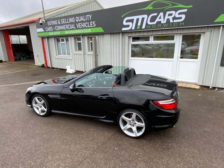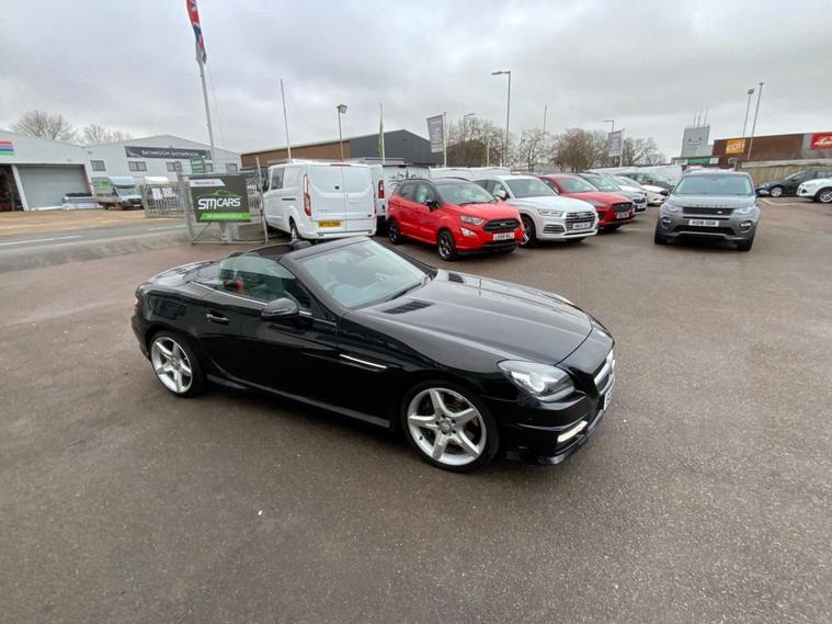 This 2015 Mercedes Benz SLK200 AMG Sport is a superb example, having been owned by just one person from new and boasting a clear vehicle history check. This stylish convertible features the desirable AMG Sport trim and is powered by an efficient 2.0 litre petrol engine. You can drive with confidence knowing it meets Euro 6 emission standards. Convenience is key with features like Headlamp Assist for automatic headlight activation, air conditioning to keep you comfortable in all conditions, and a Bluetooth interface for seamless hands free telephone calls. Experience impressive fuel economy with this SLK, achieving up to 48 miles per gallon, which is a significant advantage over many similar vehicles. Furthermore, its low CO2 emissions highlight its efficiency and environmental consideration. This combination of strong performance, excellent economy, and desirable features makes this Mercedes Benz SLK200 AMG Sport a truly compelling choice. FULL SERVICE HISTORY, RESERVE THIS CAR FOR A FULLY REFUNDABLE £99. THE DEPOSIT WILL BE DEDUCTED FROM THE FINAL PRICE IF YOU GO AHEAD, OR REFUNDED IN FULL IF YOU DONT.HPI CLEAR. FINANCE AVAILABLE - LOW CREDIT SCORE? WE MAY STILL BE ABLE TO HELP. EXCELLENT EXTENDED AA WARRANTY OPTION AND 12 MONTH AA BREAKDOWN COVER INCLUDED. ALL CARS READY TO DRIVE AWAY. 5 DAY DRIVE AWAY INSURANCE AVAILABLE. ACT FAST - THIS WONT HANG AROUND LONG! dealer's website