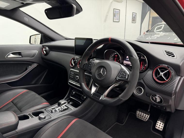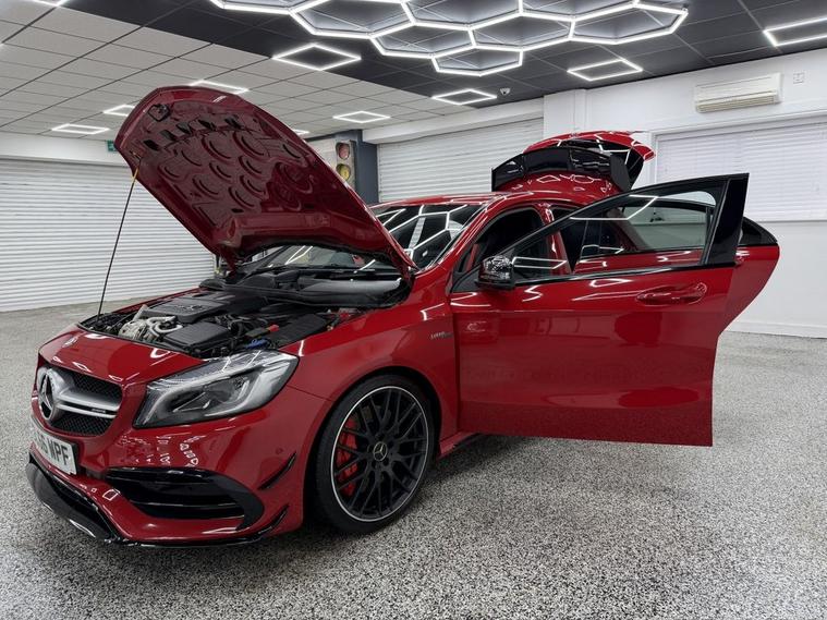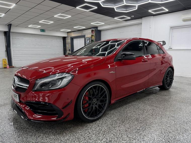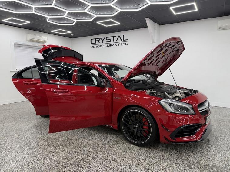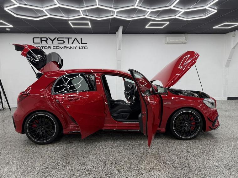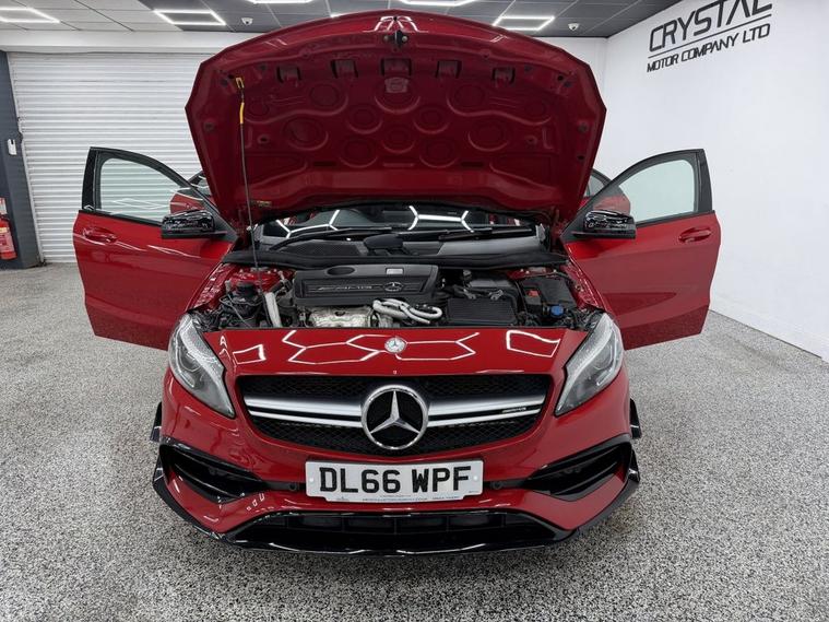Crystal motor company are delighted to offer for sale this beautifully presented 2016 MERCEDES-BENZ A-CLASS 2.0 A45 AMG Hatchback 5dr Petrol SpdS DCT 4MATIC Euro 6 (s/s) (360 ps) finished in JUPITER RED. This car comes with TWO KEYS, ONE FORMER KEEPER, FULL MERCEDES SERVICE HISTORY, 10 SERVICES, LAST SERVICED ON 06/01/2026 AT 37, 617 B SERVICE. This car is equipped with 19 ALLOY WHEELS, RED BRAKE CALLIPERS, FRONT AND REAR PARKING SENSORS, REAR REVERSING CAMERA, ELECTRIC FOLDING WING MIRRORS, AERO KIT, AMG PERFORMANCE EXHAUST, PART LEATHER SEATS, HEATED FRONT SEATS, PART LEATHER AND ALCANTARA STEERING WHEEL, PADDLE SHIFT, CRUISE CONTROL, AMBIENT LIGHTING (12 COLOUR CHOICE), DAB RADIO, BLUETOOTH AUDIO, BLUETOOTH PHONE CONNECTION, SATNAV, APPLE CARPLAY, ANDROID AUTO. The car is 100% HPi clear. Part exchange and finance are available and all major credit and debit cards accepted. Crystal Motor Company Ltd Used Programme includes a full PDI inside and out, MOT, mileage certificate and a full inside and out valet. You can request a personalised video with attention given to any specifics you would like a better view of and we will be pleased to assist you. Likewise, we offer our customers a free collection service. Our journey began in 1996 with the aim to deliver the best possible customer experience, you will enjoy a completely hassle free approach, no pressure and great prices, values we stand by to this day. Looking to finance your next car? We have over 30 lenders on board to help each customer with their financial circumstance. Every vehicle benefits from a minimum of 3 months warranty with the option to extend to 6/12/24/36 months.