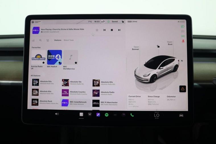 This 2022 Tesla Model 3 Long Range has had only one owner since new, offering a superb ownership proposition. As a fully electric vehicle, it boasts a four wheel drive drivetrain and a substantial 78 kWh battery, providing an impressive maximum range of 389 miles when new. This Model 3 also features a fixed panoramic glass roof with a sunroof, heated front seats, LED headlights, and air conditioning for enhanced comfort. The interior is further complemented by 12 way power adjustable front and rear heated seats, ensuring a pleasant experience for all occupants. The highlights of this Tesla Model 3 Long Range demonstrate its superior capabilities compared to other vehicles. Its acceleration is particularly noteworthy, achieving 0 to 60 miles per hour in just 4.2 seconds, a performance that sets it apart. Furthermore, the vehicle offers a generous boot space, providing ample room for luggage and shopping. Charging is also convenient, with a full charge at home taking approximately 12 hours using a 7kW charger, and a rapid charge to 80% achievable in as little as 26 minutes at a public charging station.
