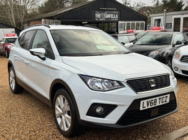 This 2018 SEAT Arona TSI SE Technology is a superb example, having been owned by just one careful keeper since new. Recently serviced and an Mot that runs until Nov 26.This stylish compact SUV is powered by an efficient 1.0 litre petrol engine, meeting Euro 6 emissions standards. It comes equipped with the desirable SE Technology trim, enhancing your driving experience with automatic headlights that switch on when needed, and rear parking sensors to assist with manoeuvring. Inside, youll find air conditioning to keep you comfortable, and the Connectivity Pack Plus which includes convenient wireless phone charging. Enjoy seamless integration with your devices thanks to the Bluetooth audio streaming and handsfree system. This Arona stands out with an impressive fuel economy of 51 miles per gallon, indicating it is more economical than many similar vehicles. Furthermore, its low insurance group rating means more affordable cover, and its low CO2 emissions highlight its environmental consideration, making it a sensible choice for many drivers.