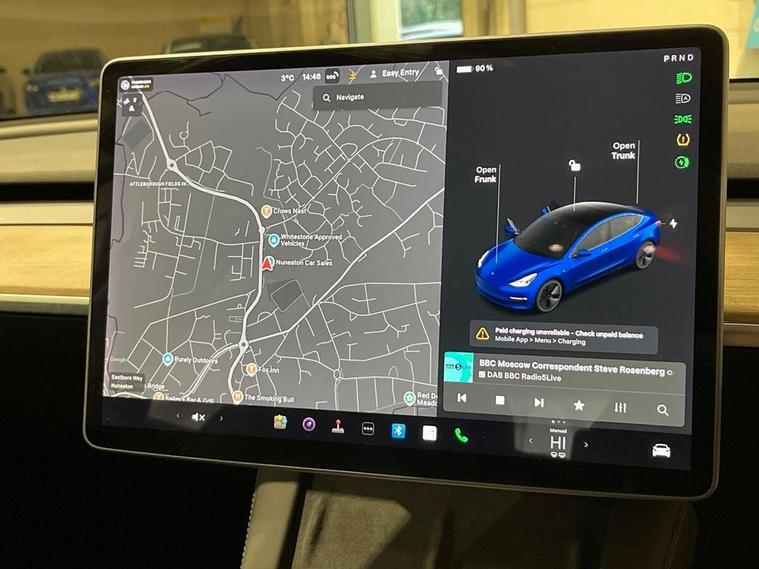 Tesla Model 3 Standard Range Plus - Leather Interior, Heated front seats, Panoramic Roof, Sat Nav, Multimedia Centre - Part Service History This 2021 Tesla Model 3 Standard Range Plus presents a superb ownership proposition, having been cherished by just one owner from new with a clear vehicle history. As a fully electric vehicle, it boasts a 53 kWh battery offering an impressive maximum range of 278 miles when new. Recharging is convenient, with a full charge at home using a 7kW charger taking approximately 7 hours and 10 minutes, while rapid charging to 80% on a public charger can be achieved in as little as 29 minutes. The Model 3 Standard Range Plus is designed for efficiency and a smooth driving experience. Its electric powertrain delivers instant torque and a quiet ride, setting it apart from many conventional vehicles. The substantial battery capacity and excellent range mean fewer stops on longer journeys, and the rapid charging capability further enhances its practicality for daily use and travel. This particular example, with its single owner and clean history, offers a compelling entry into electric vehicle ownership. Combining comfort, performance and practicality, this model is Ideal for business use, long-distance driving or premium daily motoring. Service History Part service history recorded as follows: Feb 2026 Nuneaton Car Sales Key Features & Specification 18 Inch Alloy Wheels Full LED Lighting Front and Rear Parking sensors / 360 cameras Cruise Control Air Conditioning / Dual-Zone Climate Control Satellite Navigation DAB Digital Radio Bluetooth Connectivity USB / Voice Control ISOFIX Child Seat Mounts Driver Assistance Features Heated Front Seats Vehicle Information Registration: 23/06/2021 Mileage: 50817 miles Fuel Type: Electric Transmission: Automatic Owners: [1] HPI Status: Clear Why Buy From Nuneaton Car Sales? * Multi Award-Winning Dealership * AA Approved Dealer * NO ADMIN FEES * 12 Months AA Breakdown Cover * Multi-Point Vehicle Inspection * Free MOT if due within 6 months * Competitive Finance Available * Part Exchange Welcome * Click & Collect & Home Delivery Available * Same Day Drive Away on most vehicles Extra Peace of Mind Personalised walk-around videos available on request. All vehicles professionally prepared and valeted prior to sale. This vehicle is price-checked daily against the UK market to ensure excellent value. Every effort is made to ensure vehicle information is accurate. Specification data may be supplied by a third-party source. If a particular feature is important to your purchase decision, please contact our sales team who will be happy to confirm.