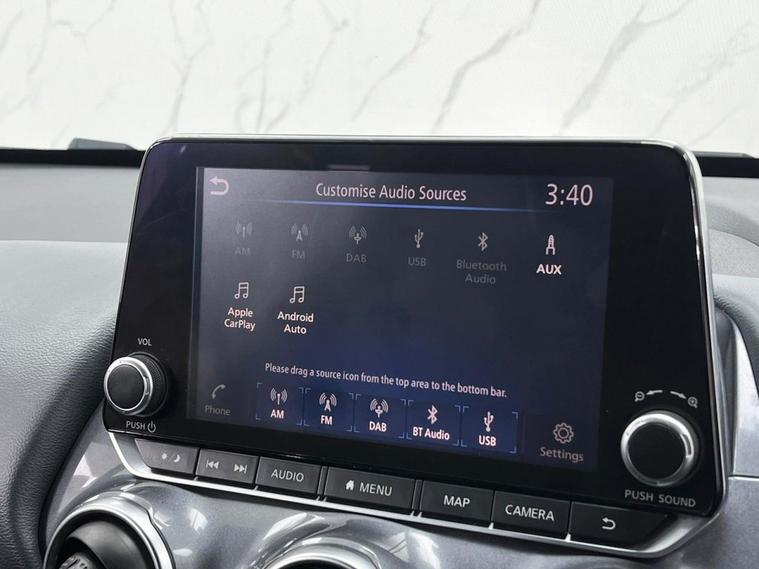 This 2020 Nissan Juke DIG-T Tekna is presented with a clear vehicle history check and will be supplied with a full 12 months MOT for your peace of mind. This stylish Tekna trim Juke is equipped with a 1.0 litre petrol engine and meets Euro 6 emissions standards. Inside, you will find the Comfort Pack which includes climate control, ensuring a pleasant cabin temperature all year round. For convenience, it features both front and rear parking sensors to assist with manoeuvring, along with USB and AUX socket inputs and Bluetooth connectivity for your devices. Enjoy an exceptional audio experience with the Bose Personal Plus audio system, offering a premium branded sound. This Juke also boasts impressive fuel economy, achieving up to 46 miles per gallon, and benefits from low CO2 emissions, indicating its efficiency compared to other vehicles in its class.