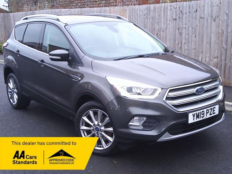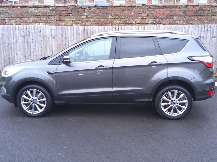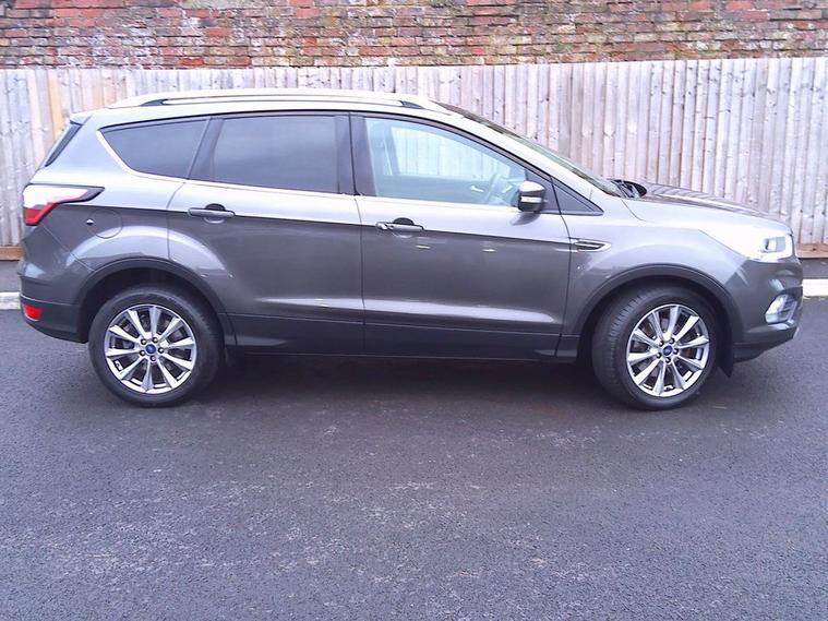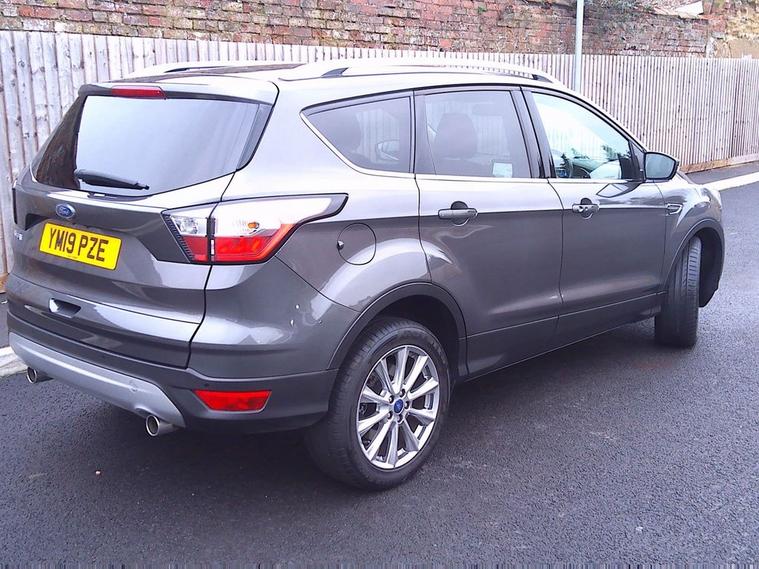 This 2019 Ford Kuga TDCi Titanium Edition in Premium Magnetic Grey Metallic with part leather black interior trim. It has covered 47, 400 miles and is complete with full service history records. This well appointed SUV features a robust 2.0L Diesel Engine with 150bhp, meeting Euro 6 emissions standards. The Titanium Edition trim level ensures a host of desirable features including Ford SYNC3 Sat Nav with Apple Carplay and Android Auto, Rear Park Aid, and the convenient Ford Key Free System for keyless entry and start.. Comfort is further enhanced by the DEATC Dual-Zone Electronic Automatic Temperature Control, allowing for individual climate settings together with Cruise Control and Speed Limiter. It is HPI checked clear, has a service/handbook pack and two remote locking keys. Our advertised price includes a further service, 12 months MOT and a 6 month Warranty for complete peace of mind. We are happy to take your part exchange and we guarantee to offer you the true market value of your car. Thinking of Car finance? We work with leading companies to source the best deal for you. With a simple, straight forward application, please ask us for a quotation to see just how affordable this car could be. The car has just arrived at the showroom and is available to view and test drive. We have flexible opening hours so please do give us a call to arrange a convenient time for you. We look forward to hearing from you.