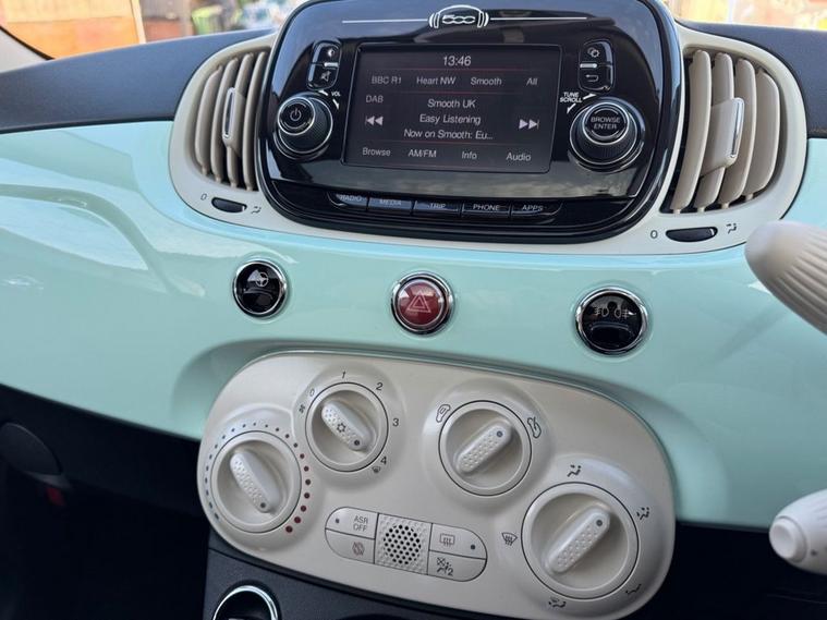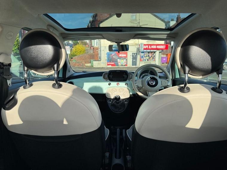 Fiat 500 1.2 Lounge Finished in Smooth Mint paintwork with 15 silver alloys. Only 2 owners from new, full service history and recently serviced at 34, 166 miles. Over 70 miles per gallon fuel economy and insurance group 8. Spec includes rear parking sensors, glass sunroof with blind, multi-function steering, trip computer, Cruise Control, Bluetooth, USB input, Remote central locking with 2 keys, Air Con and much more. Call 01138032273 or visit dealer's website