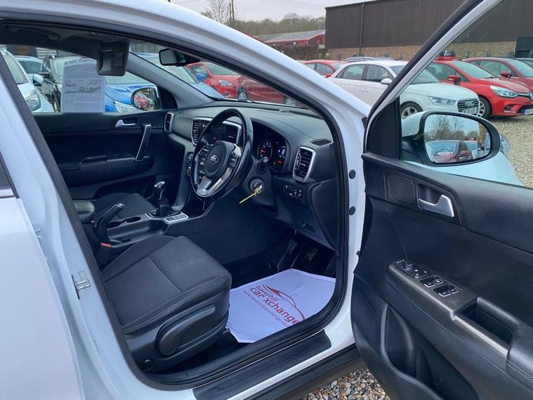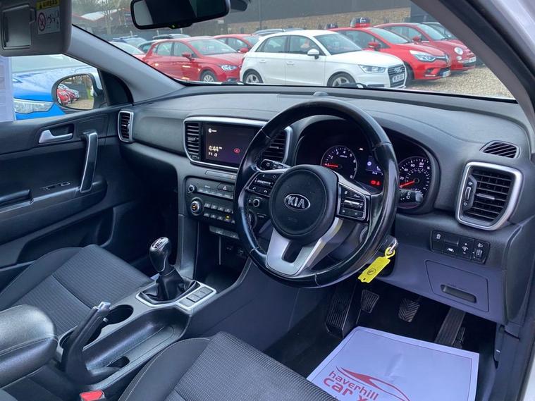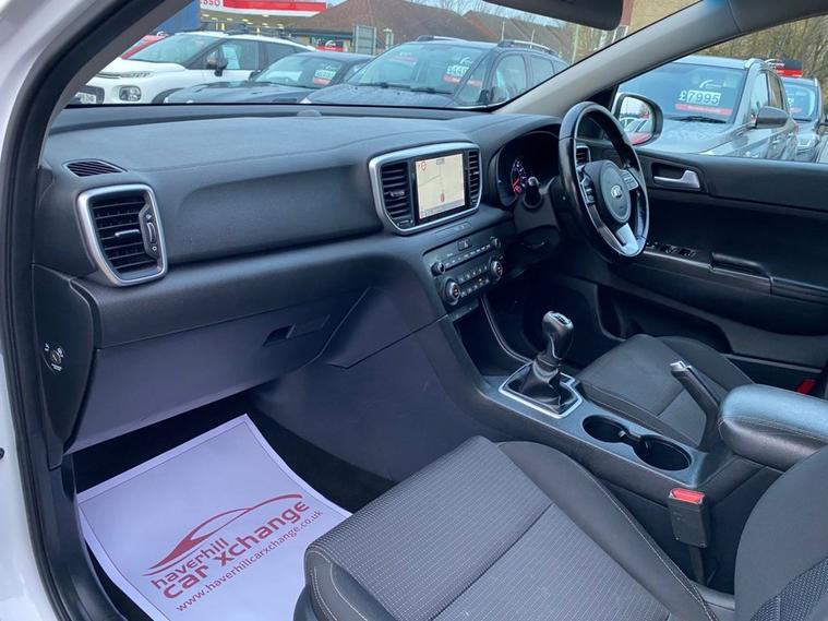 THIS VEHICLE WILL COME WITH A NEW 12 MONTH MOT+8 INCH TOUCHSCREEN SATELLITE NAVIGATION SYSTEM+DAB RADIO-CD-MP3 PLAYER+BLUETOOTH+DUAL ZONE CLIMATE CONTROL AIR-CONDITIONING+LUXURIOUS HETATED SEATS+AUTOMATIC HEADLIGHT ACTIVATION+RAIN-SENSING WINDSCREEN WIPERS+PARKING ASSISTANCE WITH PARKING CAMERA+FUSION WHITE PAINT+17 INCH ALLOY WHEELS. At Haverhill Car Xchange we would like to offer you our Kia Sportage SUV which has been finished in a Fusion White paint with luxurious HEATED Premium Cloth upholstery. Excellent Specification Includes an 8 Inch Touchscreen Satellite Navigation System, Kia Connected Services Featuring TOMTOM-Traffic-Speed Cameras-Local Search and Weather Updates, DAB Radio-CD-MP3 Player, Bluetooth, USB Port for Connection of a Mobile Device, 12 Volt Power Socket, Lane Keeping Assist System, Dual Zone Climate Control Air-Conditioning, Cruise Control with Speed Limiter, All-Round Electric Windows with Drivers Auto Up-Down Function, Body Coloured Bumpers/Door Handles/Rear Roof Spoiler and Door Mirrors with Integrated Side Indicators, Automatic Headlight Activation, Bi-Function Halogen Headlights, LED Daytime Running Lights, Projection Headlights, Rain-Sensing Windscreen Wipers, Luxurious Heated Upholstery, Parking Assistance with Parking Camera, Leather Multifunction Steering Wheel, Privacy Glass, 17 Inch Alloy Wheels, Power Steering, Child Safety Rear Door Locks, ABS Breaking System, Airbags, Alarm, Immobiliser, Remote Central Locking and ISOFIX Anchorage Points for Child Seats.
