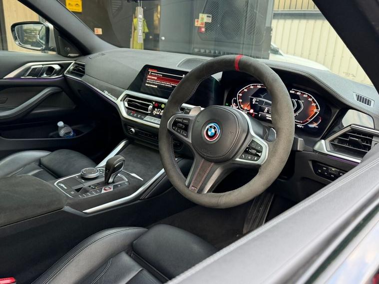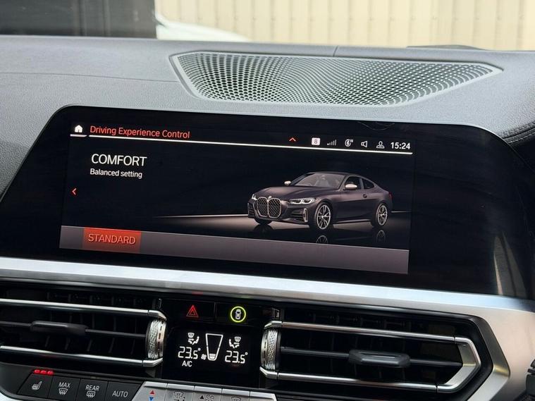 Boasting a full dealership service history and a clear vehicle history check, this 2021 BMW 4 Series M440i offers excellent peace of mind. This four wheel drive coupe is powered by a 3.0 litre petrol hybrid engine and meets Euro 6 emissions standards. It comes equipped with a premium Harman Kardon loudspeaker system, a Technology Package featuring a Head Up Display, and a three zone automatic air conditioning system for ultimate comfort. The BMW Live Cockpit Professional with Bluetooth connectivity and a comprehensive Parking Assistant, including front and rear sensors and a rear camera, further enhance the driving experience. This M440i is presented with a 6 month warranty, ensuring your investment is protected. Its low insurance group rating indicates that running costs are favourable compared to similar vehicles. The combination of its advanced features, robust provenance, and efficient hybrid powertrain makes this BMW 4 Series a compelling choice for those seeking a sophisticated and well maintained coupe.