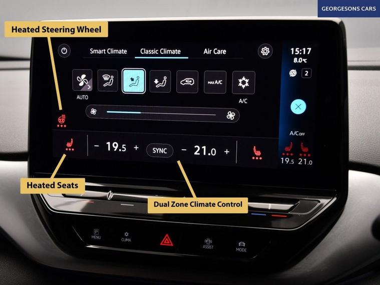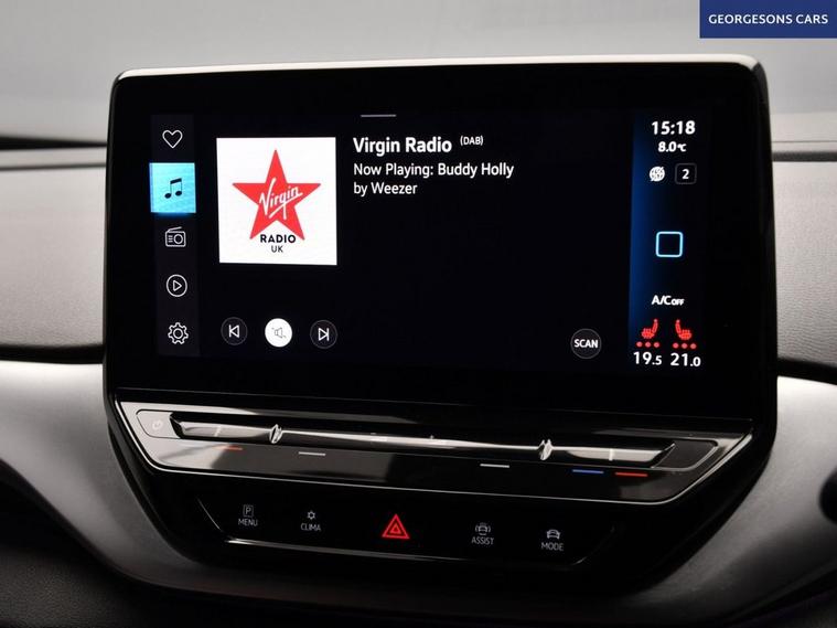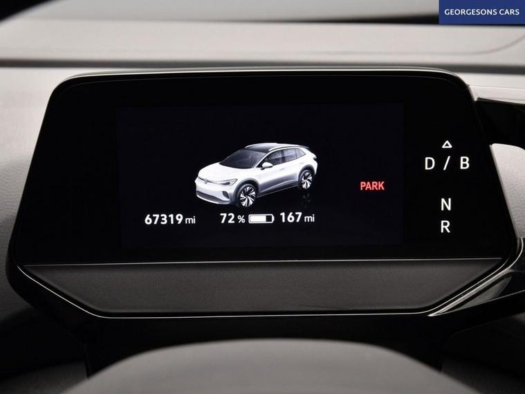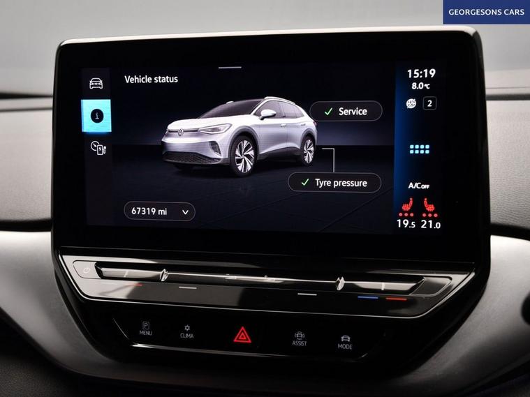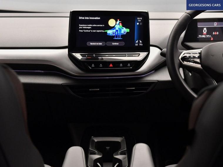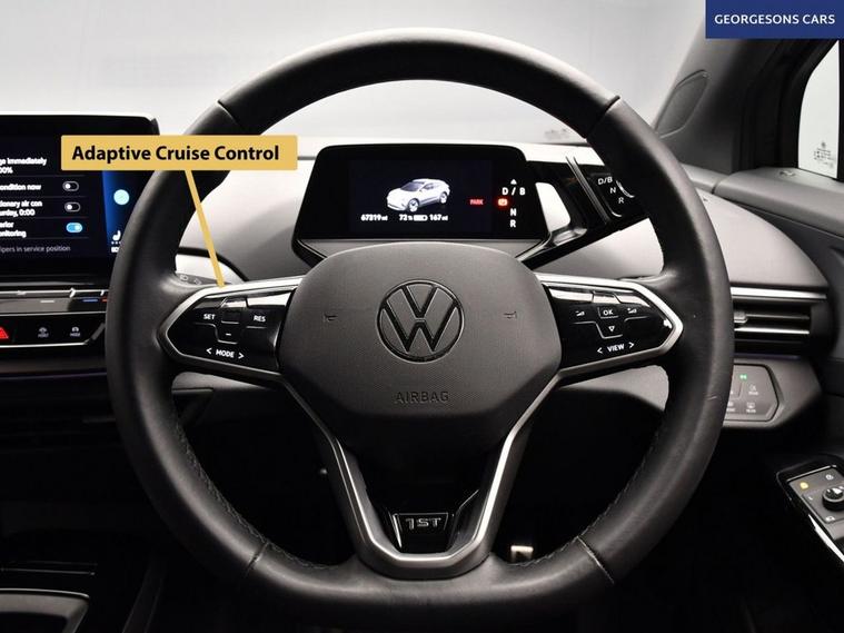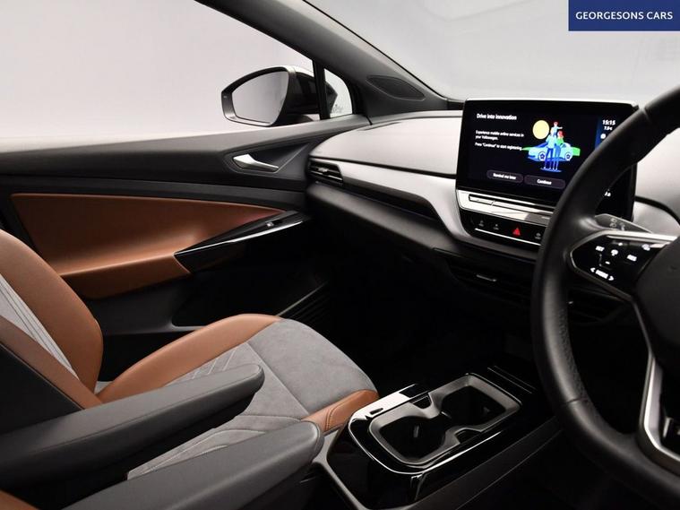 This Volkswagen ID.4 Pro Performance 77kWh 1ST Edition is a rear-wheel-drive all-electric SUV powered by a 77kWh battery and automatic transmission, delivering strong performance and excellent range. With one owner from new, this launch-spec 1ST Edition benefits from a high level of standard equipment focused on comfort, technology and driver assistance. It is equipped with ambient interior lighting, satellite navigation, Apple CarPlay, Bluetooth and DAB radio. Manoeuvring is assisted by a reverse camera and parking sensors. Comfort features include dual-zone climate control, heated seats and a heated steering wheel. Driver assistance systems include adaptive cruise control with speed limiter and lane assist, making this ID.4 a well-specified, practical and refined electric SUV.