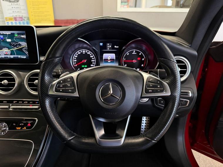 A superb C220d AMG Line Premium diesel automatic in Designo Hyacinth Red metallic trimmed in Black Artico leather with Black Ash and Brushed Aluminium interior accents. Very well equipped AMG Line Premium model with keyless entry and ignition, electric slide and tilt panoramic glass pan roof, heated electric sport seats with triple memory and adjustable lumbar support, front and rear parking sensors with reversing camera, automatic LED High Performance headlights, cruise control, DAB radio, Bluetooth with audio streaming, satellite navigation with voice controls, coloured interior ambient lighting, Mercedes-Benz illuminated door sill finishers, folding rear seats, electric powered tailgate and more. Great looking with its AMG body styling, upgraded 19 inch AMG alloy wheels and Night Package which adds gloss black front splitter, gloss black mirrors, gloss black window surrounds and dark privacy glass. Previously sold by ourselves and supplied with complete book pack in Mercedes wallet, two keys, 56, 957 miles, excellent service history and six months Momentum Plan 3 Pro warranty so that you can drive away with total confidence knowing that you are benefiting from what is probably the best warranty cover available in the UK today. Amver Select are proud to have been awarded Auto Traders Highly Rated status for 2025, an honour that we have received every year since its introduction in 2018. In our current premises for nearly two decades, we are conveniently located between Glasgow and Edinburgh and are open from 10:00am to 6:00pm Monday to Friday. We have committed to AA Cars Standards, basically the AAs Commandments of Gold Standard customer service. All cars are provided with a minimum 6 months MOT, 12 months AA basic breakdown cover and other exclusive AA member benefits. Finance available subject to approval. Part-exchange welcome.