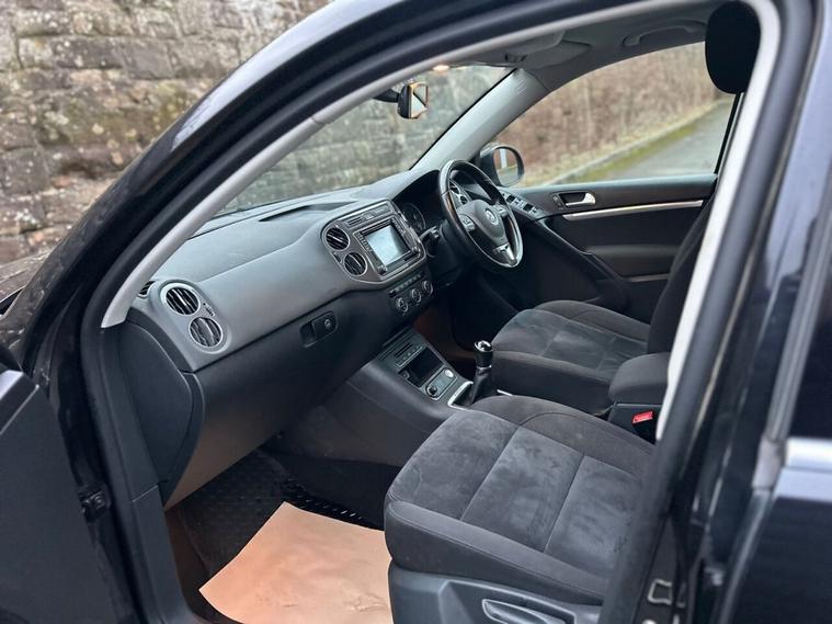 Highly sought after 2015 Volkswagen Tiguan 2.0 TDI Match edition with 85, 000 miles and 111 service stamps!!! presented in metallic black with contrasting silver alloy wheels the Tiguan is a very desirable model with a spacious cabin and incredible efficiency and performance.