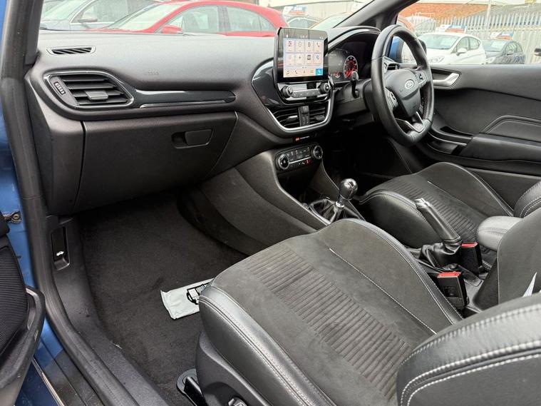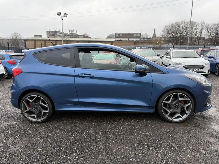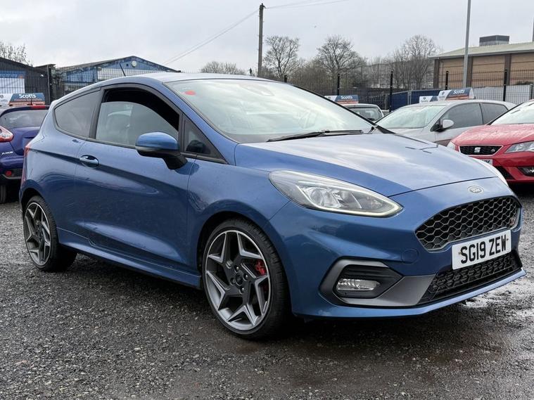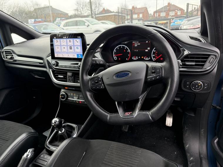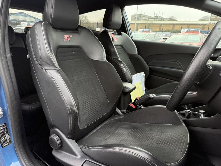 Scotts of Leeds used Car Sales are pleased to offer this FORD FIESTA 1.5T EcoBoost ST-3 Hatchback 3 Door Petrol Manual in Blue. The car is in good condition throughout, in a lovely colour combination and a great specification including Satellite navigation, Apple car play, Heated sports style seats, Heated steering wheel, DAB digital radio, Bluetooth, Parking sensors, Cruise control, USB point, Reverse camera, Lane keeping assist, Automatic lights, Voice command, Electric folding mirrors, Electric windows, Privacy glass, Drivers armrest, 6 speed gearbox, Isofix, Alloy wheels and much much more. 1 Former Keeper supplied with an up to date service record having just been serviced in our Workshop and an MOT until February 2027 ready to drive away. 3 MONTH NATIONWIDE WARRANTY provided with all vehicles. NATIONWIDE DELIVERY also available. A guaranteed 12 Months MOT can be added for an extra £100. DISCLAIMER: The above specification is true and correct. Any other specification listed elsewhere can sometimes be incorrect. Please check with Sales Executive to clarify this if needed prior to purchase.