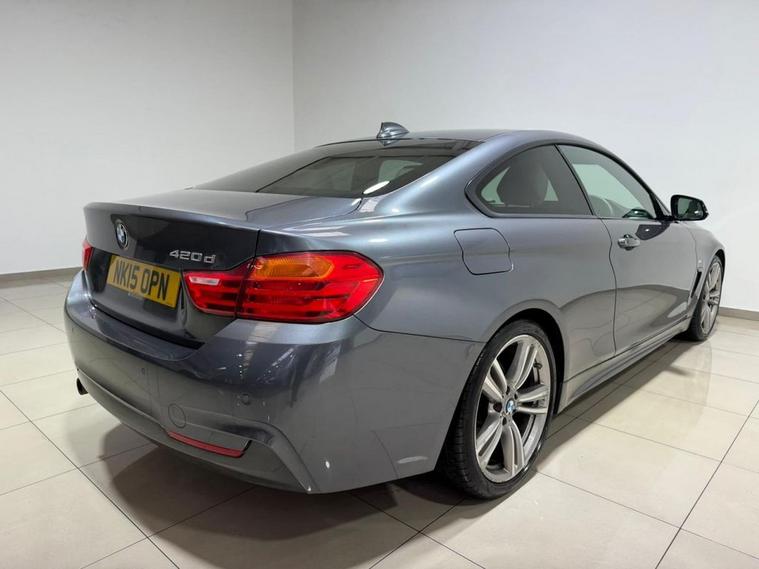 ** NATIONWIDE DELIVERY ** X2 KEYS ** HEATED SEATS ** PARKING SENSORS ** BMW PROFESSIONAL MULTIMEDIA SCREEN ** SATELLITE NAVIGATION ** BLUETOOTH CONNECTIVITY ** CRUISE CONTROL ** SERVICE HISTORY ** 1 YEAR MOT ADVISORY FREE ** FRESH SERVICE ** 3 MONTH WARRANTY ** 1 YEAR AA BREAKDOWN COVER ** ULEZ COMPLIANT ** The BMW 4 Series 2.0 420d M Sport Coupe delivers a perfect blend of dynamic performance and sleek M Sport styling. Sitting on striking 19-inch M Double Spoke alloy wheels, it features Xenon headlights with automatic activation, electric heated door mirrors, and front and rear Park Distance Control for added confidence. Drive Performance Control allows you to tailor the driving experience with ECO PRO, Comfort, Sport, and Sport Plus modes, while cruise control with brake function enhances long-distance comfort. Inside, the driver-focused cabin is finished with ambient LED lighting and offers heated front sport seats, dual-zone automatic climate control, and a split-folding rear seat for added practicality. Technology highlights include BMW Professional multimedia navigation, DAB digital radio, a 6.5-inch colour display, enhanced Bluetooth with voice control, USB connectivity, and Comfort Go keyless engine start, making this 420d M Sport Coupe both refined and engaging to drive.