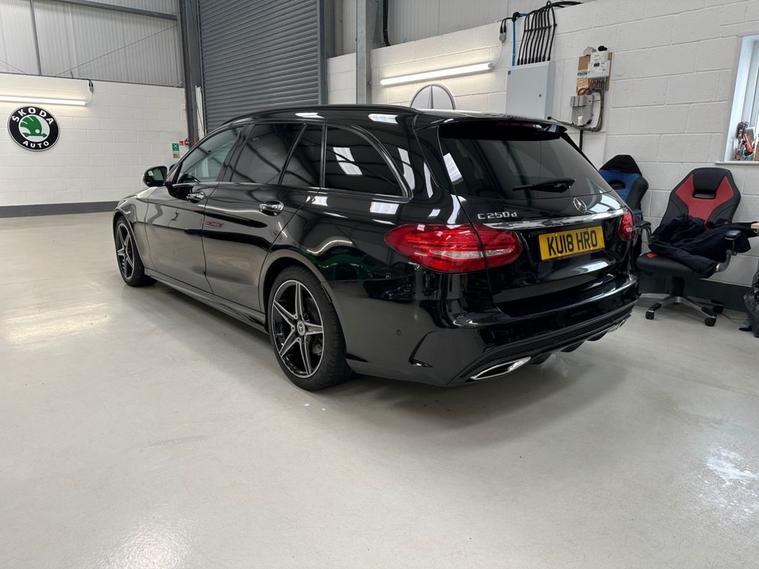 AWAITING PREPARATION (MORE PICTURES & WALK-AROUND VIDEO TO FOLLOW) - Southwest Motor Compnay are extremely proud to be offering for sale this gorgeous, 2018, Mercedes-Benz C-Class C250d AMG Line premium plus estate. Finished in the beautiful Obsidian black metallic with full black leather interior and 18-inch black/diamond-cut alloy wheels, if look fantastic from every angle. Incredibly well presented inside and out with a full Mercedes-Benz service history, its clear that this C-Class has been exceptionally well cared for. A well-made, spacious interior with ISO-Fix child seat anchors and a huge boot make this vehicle perfectly suited to family life. This particular also benefits from huge specifications, including satellite navigation, Bluetooth, DAB radio, Burmester premium surround sound, multimedia connectivity, dual-zone climate control, and electrically operated and heated seats, panoramic glass sunroof, reversing camera, parking sensors (front/rear), automtic LED lights, electric taligate, privacy glass, mutifunction steering wheel and cruise control which ensure its a beautifully well queipped vehicle to drive and travel in. The 2.1L diesel offers fantastic performance and economy, which is delivered through a silky smooth 9-speed automatic transmission (with steering wheel paddles). With an impressive 67 MPG achievable on a run, together with this vehicle being ULEZ COMPLAINT ensures that running costs are brilliantly low. A fantastic, well-cared-for example with a full Mercedes-Benz Service history, huge specifications and great economy. Supplied serviced with a fresh 12-month MOT and 3-month (extendable if desired) warranty. Part-exchange welcome. All our vehicles are HPI clear. All major debit/credit cards are accepted. Great finance packages are available to suit all customer profiles. The vehicle specification displayed may not be exact for this vehicle. Please contact us to confirm the precise specifications.