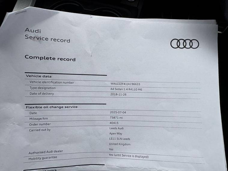 This 2018 Audi A4 TFSI S line boasts a clear vehicle history, offering you peace of mind. This stylish saloon features a 1.4 litre petrol engine and meets Euro 6 emissions standards. Inside, youll find the desirable Technology Pack, which includes Bluetooth connectivity and wireless phone charging, alongside heated front seats for added comfort. The exterior is enhanced by striking Matrix LED headlights with dynamic front and rear indicators, complemented by LED rear lights. The Audi A4 TFSI S line is designed to be economical and efficient. Its impressive fuel economy of 52 miles per gallon indicates it is more cost effective to run than many similar vehicles. Furthermore, its low insurance group and low CO2 emissions highlight its advantages over other cars in its class, making it a sensible choice for many drivers.