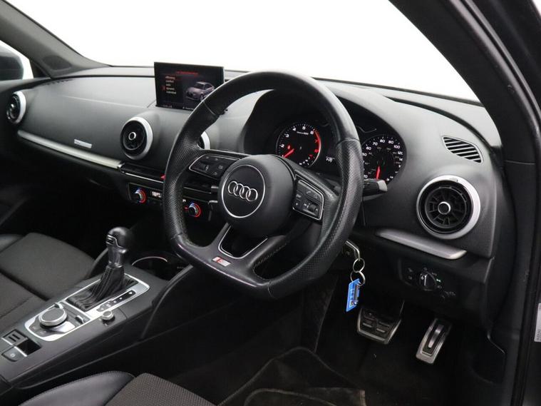 This 2017 Audi A3 TFSI Black Edition offers an impressive fuel economy of 57 miles per gallon, making it an economical choice for your driving needs. This Euro 6 compliant model features a 1.5 litre petrol engine and comes in the desirable Black Edition trim. You will appreciate the convenience of Dual Zone Electronic Climate Control, ensuring comfort for all occupants. The vehicle is also equipped with LED headlights and LED rear lights, complete with dynamic rear indicators for enhanced visibility. Further enhancing your driving experience, this Audi A3 includes an auto dimming rear view mirror, activated by a light and rain sensor, and automatic headlights. Stay connected on the go with the integrated Bluetooth interface, and manoeuvre with confidence thanks to the rear parking sensors. The low CO2 emissions highlight indicates that this A3 is more environmentally friendly than many similar vehicles, contributing to lower road tax.