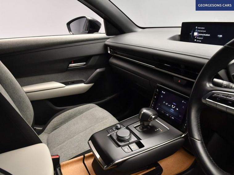 The Mazda MX-30 35.5kWh SE-L Lux combines a smooth electric motor with 145hp, delivering 0-62mph in 9.6 seconds and up to 124 miles WLTP range in this front-wheel-drive setup with instant single-speed automatic transmission. The SE-L Lux trim offers premium comfort with a high-grade interior. With one owner and four services, this MX-30 is in excellent condition. Navigate effortlessly with integrated satellite navigation, Apple CarPlay, Bluetooth and DAB radio, ensuring seamless connectivity on every journey. Parking is a breeze thanks to the reverse camera, providing clear visibility and confidence in tight spaces. Stay comfortable with climate control, offering personalised cooling year-round. Hill assist ensures smooth starts on inclines, while blind spot assist adds extra security on highways. The head-up display keeps key information in your line of sight. The stylish five-door SUV design includes a 366-litre boot for practicality.