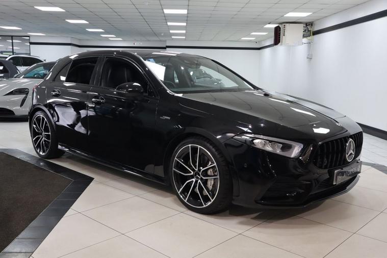 JUST ARRIVED INTO STOCK! COVERING 31K MILES FROM NEW BACKED WITH A FULL SERVICE HISTORY! IMPRESSIVE PREMIUM HOT HATCH EXAMPLE, NOT TO BE MISSED! FINISHED IN COSMOS BLACK METALLIC! SPEC INCLUDES, PREMIUM PACKAGE, HEATED FRONT SEATS, SMARTPHONE INTEGRATION WITH ANDROID AUTO AND APPLE CARPLAY, REAR VIEW CAMERA INCLUDING ACTIVE PARK ASSIST, ELECTRIC FOLDING MIRRORS, AUTOMATIC CLIMATE CONTROL, PREMIUM AMBIENT LIGHTING, WIRELESS CHARGING IN CENTRE CONSOLE, AMG NAPPA LEATHER FLAT BOTTOM MULTI FUNCTION STEERING WHEEL, AMG NIGHT EXTERIOR PACKAGE, 19 INCH AMG DOUBLE SPOKE ALLOY WHEELS, ILLUMINATED DOOR SILLS, WIDESCREEN COCKPIT DISPLAY, EXCLUSIVE PACKAGE! VERY SOUGHT AFTER INCREDIBLE EXAMPLE, EARLY VIEWING IS ESSENTIAL TO AVOID DISAPPOINTMENT, COMPREHENSIVE WARRANTY OPTIONS AVAILABLE , AA BREAKDOWN AVAILABLE STUNNING SHOWROOM CONDITION, MUST BE SEEN NOT TO BE MISSED, FIRST TO SEE WILL BUY, BE VERY QUICK THIS GEM WILL SOON GO!, VIEW MORE PICS ON OUR WEBSITE, PLEASE CALL FOR FULL SPEC, SIMPLY STUNNING!