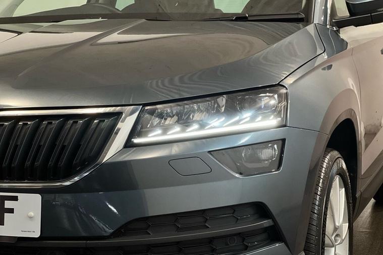 This 2022 Skoda Karoq TSI SE L boasts a clear vehicle history and has had only one owner from new, offering excellent peace of mind. This Euro 6 compliant 1.5 litre petrol model comes with an MOT valid until December 2026. Inside, youll find a 2 spoke leather heated multi-function steering wheel with DSG paddles, dual zone climate control, and a winter pack that includes heated seats. The light and rain sensor automatically adjusts headlights and the rear view mirror, while LED headlights provide clear illumination. The Skoda Karoq TSI SE L stands out with its impressive 46 mpg fuel economy, making it an economical choice for your journeys. Its acceleration from 0-60mph in just 8.7 seconds demonstrates its responsive performance. Furthermore, this model benefits from a low insurance group, which can help keep running costs down. Youll also appreciate the generous boot space, perfect for accommodating luggage or shopping.