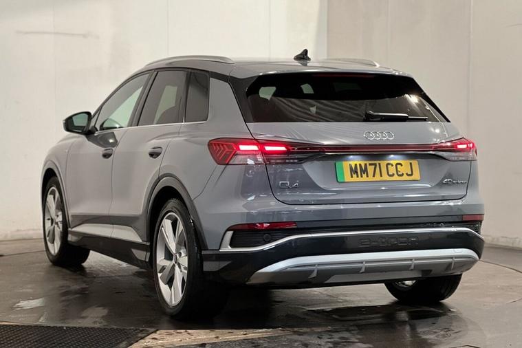 This 2022 Audi Q4 e-tron S line boasts a clear vehicle history and has had only one owner since new. As an electric vehicle, it offers a substantial battery total capacity of 82 kWh, providing a maximum range of 312 miles when new. This S line variant comes equipped with striking LED headlights featuring LED daytime running lights, ensuring excellent visibility. Inside, youll find comfort in the heated front seats and the convenience of rear parking sensors. The cabin also features comfort auxiliary air conditioning and a 3 zone electronic climate control system, allowing for personalised comfort for all occupants. The Audi Q4 e-tron S line is designed for modern driving needs. Its impressive 312 mile maximum range at new means you can travel further between charges, making it a practical choice for both daily commutes and longer journeys. Charging is also efficient, with a full charge at home on a 7kW charger taking approximately 11 hours and 30 minutes, while the fastest public charging can replenish the battery from empty to 80% in just 30 minutes. Furthermore, this vehicle offers generous boot space, ideal for luggage or shopping. With its MOT valid until September 2026, this Audi Q4 e-tron presents a compelling package of electric performance, comfort, and practicality.