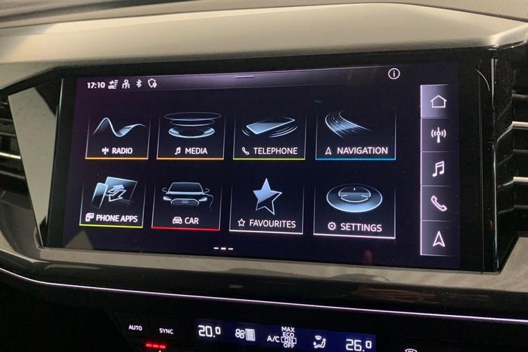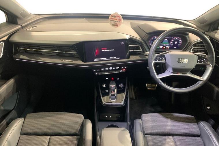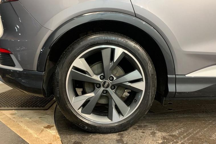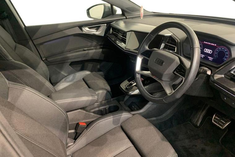 This 2023 Audi Q4 e-tron S line boasts an exceptional provenance, having been owned by just one person and showing very low mileage for its age at only 16184 miles, with its MOT valid until January 2027 and a clear vehicle history check. This electric vehicle features an 82 kWh battery offering a maximum range of 322 miles when new, and benefits from a full charging time at home of 11 hours 30 minutes using a 7kW charger, or a rapid 30 minutes for 0-80% charge on the fastest public chargers. Notable features include Comfort Auxiliary Air Conditioning, Bluetooth Interface, 3-Zone Electronic Climate Control, Rear Parking Sensors, and LED Headlights with LED Daytime Running Lights. The Audi Q4 e-tron S line stands out with its impressive 322 mile maximum range from new, indicating its capability for longer journeys compared to many electric vehicles. Its large boot space offers practical convenience for everyday needs and travel. The combination of its electric powertrain, S line trim enhancements, and the comprehensive suite of comfort and convenience features, alongside its excellent provenance, makes this a compelling choice for those seeking a premium electric SUV.