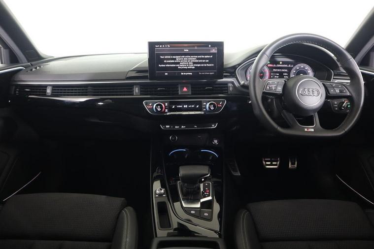 This 2022 Audi A4 TFSI Black Edition is a superb example, having had only one owner since new. This stylish saloon boasts a 2.0 litre petrol engine and meets Euro 6 emission standards. The Black Edition trim enhances its appeal, and you'll appreciate the convenience of heated front seats, perfect for colder mornings. Navigating tight spaces is made easier with the Parking System Plus, which includes sensors for both the front and rear of the car. Stay comfortable in all conditions with the Deluxe 3-Zone Electronic Climate Control, allowing personalised temperature settings for different zones. The striking LED headlights and LED rear lights, complete with dynamic rear indicators, ensure excellent visibility and add to the car's modern look. Connectivity is seamless thanks to the integrated Bluetooth interface. This Audi A4 also benefits from a low insurance group, indicating it could be more economical to own and run compared to similar vehicles.