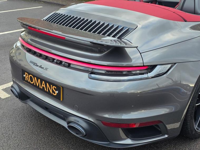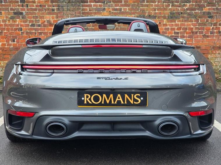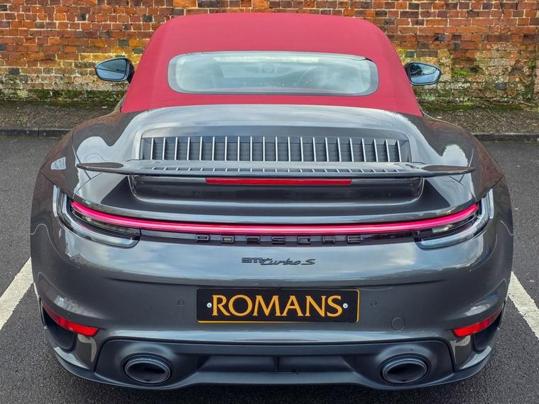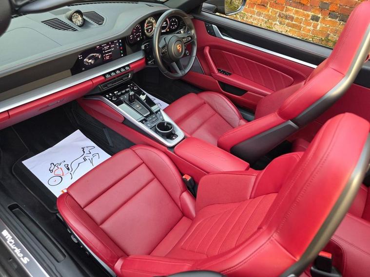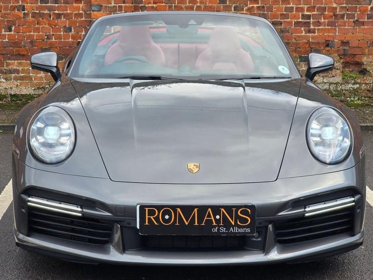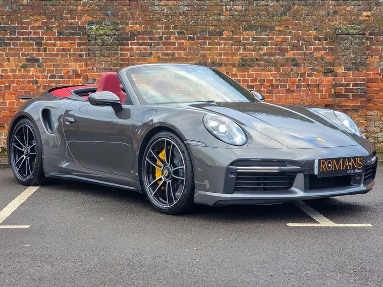 Romans of St Albans are delighted to present this Agate Grey 992 Turbo S with Contrasting Bordeaux Red Leather seats, with an impressive 650BHP which will take you from 0-60mph in just 2.5 seconds! It benefits from a Full Porsche service history, and is like new! This has a huge list of optional extras to include: Burmester High-End Surround Sound System, Night Vision Assist, ParkAssist including Surround View, PASM Sport Suspension (-10mm), Ventilated Front Seats, Sports Exhaust System with Sports Tailpipes (silver), Power Steering Plus, Porsche Ceramic Composite Brake (PCCB), LED Main Headlights in Black with Matrix Beam including Porsche Dynamic Light System Plus (PDLS Plus), Exclusive Design Tailights, and much more! FINANCE AVAILABLE. A £299 admin fee applies to third party finance companies being used. FREE ON-SITE PARKING (ASK FOR DETAILS.) Romans after care package includes: Romans warranty for 6 months (12, 24 & 36 months are available), Main dealer cover available, Full Romans service prior to delivery, 84 point vehicle inspection, 12 months MOT, Free Life time MOT when servicing with us (ask for details), Total value of package: £2000 - ALL INCLUSIVE IN THE PRICE. All of our clients have the added peace of mind that we have our own workshop facilities with free courtesy cars. Part Exchange very welcome, nationwide delivery also available. To avoid a wasted journey we highly recommend making an appointment, so call us now to get yours booked! Romans provide the highest of quality vehicles, and have at least 80 cars in stock at any one time. This means not all cars can be kept on site. This will also allow us to give you our fully undivided attention when viewing the vehicle you are interested in, WE ARE LOOKING TO BUY YOUR TOP SPEC, LOW MILEAGE, FULL SERVICE HISTORY PRESTIGE, SPORTS, AND 4X4 VEHICLES. GET MORE FOR YOUR VEHICLE BY EITHER SELLING TO US, OR ASKING US TO SELL YOUR VEHICLE FOR YOU. PRIVATE BUYERS WANT WARRANTIES, THEY WANT TO PART EXCHANGE, THEY WANT FINANCE - TAKE ADVANTAGE OF ALL OUR FACILITIES. CALL US NOW TO DISCUSS GETTING RID OF YOUR VEHICLE QUICKLY.