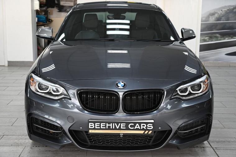 DRIVE AWAY TODAY OR HOME DELIVERY TO YOUR DOORSTEP FINANCE & PART EXCHANGE ARRANGED ONLINE** 7 DAY MONEY BACK GUARANTEE** Fabulous car BMW M240i 3.0 Coupe automatic in metallic mineral grey with full bmw service history sat nav cd dab radio bluetooth media usb aux harman kardon surround sound cruise control adaptive sport suspension full leather seats with armrest heated seats electric door mirrors front and rear parking aid sensors xenon lights m-sport steering wheel with f1 style paddleshifts eco pro sport comfort driving modes m-sport bodystyling kit alloys privacy